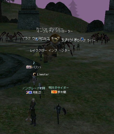 今日は、オーク村に来ている。 するとNPCに向かって自殺するキャラクター達が・・・ 観察して見ると、同じNPCに向かって何度も特攻している。 無我夢中という感じで、周辺の事は眼中に無いようだ。 もし、ここでNPCが居なくなったり移動したりした場合、 普通のプレイヤーなら文句のひとつも言ってくるだろうし、 レベル下げを目的とするなら、他のNPCに向かうだろう・・・ 隣に別のNPCが立っているのだから・・・。 なのでNPCを攻撃して引いて見た。 (セーフティゾーンなので、キャラクターへの直接攻撃は出来ない。) (もしそれが可能なら、間違いなくPKしてたと思うw) 嫌がらせである。 ついて来るついて来る・・・ 彼らには、他のNPCにターゲットを変更しようと言うような思考は無い。 プログラミングされたかの様に、わざわざ固有のNPCを追いかけてきた。 もちろん文句も言わない。 どう見ても、人が操作しているキャラクターとは考えにくい。 結論はひとつ。 BOTだ。 札幌一番って何だよw それも「一」じゃなくて「-」だw (こいつはただ立っていただけだが、名前が限りなくBOTっぽい。) NCJががんばってBANしても、また、わいてくる・・・。 ちなみに今日は、アップ後のリネ2にて、NPCを長距離引く事が出来るかを試すために来た。 どこかで、NPCを長距離引けなくなるような仕様に変更されたと聞いたからだ。 試して見よう。 街中を歩くNPC。 攻撃して見たが、このNPCは、引く事は出来なかった。 攻撃自体を完璧に無視されたw で、門に立っている警備兵を引いたんだが・・・。 確かにある程度離れると、さっさと元の場所へテレポートしてしまう。 仕様変更は、しっかり行われていると言う事か・・・。 これで、アデンの警備兵にギラン城村の町並みや、 グルーディン村の海を見せてあげる事は出来なくなってしまった。 また、ノングレード装備での遊びがひとつ減ってしまった。 リネージュ2は、ノングレード戦隊には冷たい仕様変更をよくしてくれる。 少なくとも、遊びの幅が減ってきているのは確かだ。 複雑な遊び方はいっぱい提示してくれているが、 複雑になればなるほど、リネージュ2の魅力が色あせていく。 OB時代のリネージュ2は、シリアスな世界だった。 ファンタジーの王道を突き進むMMORPGだと記憶している。 もちろん、良心的なプレイヤーばかりでは無いので荒れた事も事実だ。 異国のプレイヤーに蹂躙された事もあった。 みんなレベルも低かったし、だからこそつながりも深かった気がする。 でも、今のふざけた帽子の数々やレベル上げに力を入れたアップ、 強化アイテムを振りまくイベント・・・。 リネージュ2は、遊園地の様相を示してきていると思う。 ふざけた世界に興味は無いんだが・・・。 やはり、理想とはかけ離れたゲームへと進化(退化)している気はする。 それが製作側の求めている物なら、いずれ、俺は離れる事になるだろう。 ま、愚痴は置いといて、 今の所、まだノングレードでも楽しめる要素が残っているようだ。 ・・・と言うか、ノングレード戦隊は、人が命だな^-^; 集まった参加者のエネルギーに拠る所が大きい。 協力しようと言う気持ちの強い人が多いと、まとまりやすい。 逆に、目的も無く、ただなんとなくノングレに入った人には、面白くないかも知れない。 『ノングレードで行こう!』と言うイベント的サークル活動は、生ものである。 美味しくしようとみんなで協力すると、美味しくなるし、そうでないと荒れる気がする。 今回は、美味しくしようとする人達が集まったと思う。 そうでなければ、いろんなモンスターがいっぱい引かれて、パレード状態にはなっていないはずw いままで、こんな風な引き方をした事は無かった。それだけで新鮮! ノングレ戦隊としては、『初のMOBパレード』と言えるだろう。 俺的にはとても面白かった^^ オーク村から聖者の渓谷に来たあたりで、23:30を超えている。 開始が遅かったのもあるが、タイムアップだな。 今回初参加のパスハさん、Limestarさん。 Limestarさんは復帰組で、長いブランクの間に変わったリネ2の景観を見たいとか。 で渓谷からコースを修道院に変更して、修道院で終了にする事にした。 途中の石門に蜘蛛の巣がある事を発見したのは、Limestarさんだった。 普段見慣れて見過ごしてしまう風景のから、制作者のこだわりを切り出す目は大事だ。 MOBと一緒に走る事にときめいたパスハさんも然り。 ノングレに『ときめき』は、欠かせない。 無理強いはしないが、君達にはノングレ戦士としての才能がある。 今回参加した新規の人は、是非継続してノングレに参加して頂きたいw という事で本日のノングレ活動終了。 参加した皆さん、お疲れ様でした^-^v 以上。 PR