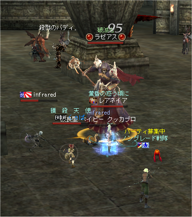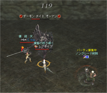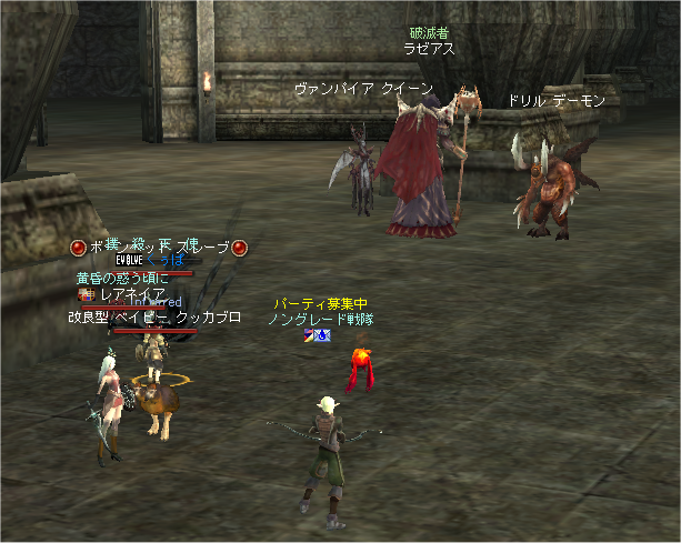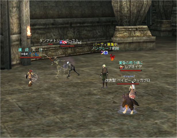 無料復帰中のノングレード戦隊、月影です。 いやー、これ、何のゲーム?と言うくらい、変ってますな。 クランのメンバーも誰もINしてないし、同盟もINしていないような。 俺の所属しているクラン以外も、相当人が居なくなっているのに驚いている。 別のクランの姉キャラのクランも同様。人が居ない。 果たして、ノングレードのイベント開いても人来てくれるのかは疑問だ。 もっとも、来てくれたらありがたいし、一人でも実行するけどね。 開催日:2012年5月10日(木) 集合場所:傲慢の塔1F 集合時間:21:00集合 作戦時間:約2時間の予定 ・・・と言う事で始めた。 久しぶりの傲慢の塔である。 公式のリネージュⅡサイトで大型アップデートの記事を読んでみると、 どうやら仕様変更が入っているようだ。果たしてどんな変更が加えられているのだろうか? ノングレード戦隊には、いつも厳しいアップデート。 いや、どんな意地悪なアップデートになっているのかを確認するのも一興か。 (俺たちの様な想定外の遊び方を研究しようとしているプレイヤーは、絶滅危惧種・・・ いや、既に絶滅しているのかもしれない。俺も無料期間終わったら休止するしw) ま、こんなアフォな企画に賛同してくれるプレイヤーが居るから戻ってくるんだけどね^^; 同盟や血盟で人が皆無の状態になっているサーバの状況を考えると、まともな人は既にリアルに戻ったと考えるのが筋かもしれない。かなりヤバイ状態だと思う。 そんな中、一緒に遊んでくれる人はいるのだろうか…本当はちょっと不安だった^^; でも、ふたを開けてみれば… レベル66の俺以外の3人は全てレベル80超え。 職も初期職、2次職、3次職、4次職と・・・バラエティに富んでいる。 (くぅぱさん、80超えのスカベンジャーwwwwwwwww) 経験値の入らないのは俺だけか!?っと思ったが、考えてみれば、 他の3人もモンスターが真っ青なので経験値は無いだろう… やたら経験値が入るアップデートやらイベントをやっている最中の非効率極まりないPTだw!! いつも通り、手応えを確かめながら上層階へ上っていく。 傲慢の塔、3階到着。 なにか見慣れないモンスターがいる。 「破壊者ラゼアス」なんだコレ・・・新しく投入されたモンスターらしい。 当然叩く! 俺以外は全員80台。やられる事もないだろう・・・うははw 叩け叩け~い!! なw 増えたwwwwwwwwwwwwwwwwwwwwwwwwwwwwwwwwwwwwwwwwww 本日・・・いや、復帰初の全滅体験w なんか、悔しいw と言うわけでゾンビアタック! 最寄って速攻で攻撃したら、案の定、こっち来たw 下の回廊へ引いて逃げ回る。敵が諦め、帰ろうとしたらダブルショットを見舞う。 そして追いかけっこ(実は結構楽しい)。 仲間の援護もあって、殲滅。 勝利だぜ>w<b 俺は決め顔でそう言った。 …かもしれないw 5階に到着。 モンスターが変わっている。 赤い名物モンスターが居なくなった;w; 彼との一戦を、心の中で楽しみにしていたのに・・・・。 22時ごろ infrared さん、タイムアップで離脱。 お疲れ様でした>w<ノ またね そして6階 …モンスター変わってないのに… orz さすがに火力が足りない。弓の攻撃もかなり痛い。 中に突入するも、猛攻に耐えられず撤退しようとしたんだが…全滅w ここで「ノングレードで行こう」のノングレ装備編はいったん終了。 リネージュⅡに慣れない俺の為に、レアネイアさんとくぅぱさんがサポートしてくれ、 通常装備に着替えてデイリークエを進行。 今回はお使い任務だった褒賞が経験値とか、なんだろ=w=と思いつつ無事終了。 二人ともありがと>w<ノ 最後は、特別編。 実は怪獣島へ移動。アデナ集めるために渡島したんだが、チラノが… これは戦わない訳には行くまいwwwwww で戦闘開始。何度か全滅=w=; 最寄ってみるとアカマナフと遭遇。珍しいのでつい見とれてしまった^^; 激闘の末、倒す事に成功した。いや~面白かった>w<b 最後はノングレード帰還で〆よう…としたんだがw 一分もしないうちにエフェクトが消えた。 もう、人の楽しみを奪う製作側の無能さに…思わず声を失った。 (これで課金して遊ぶと言う選択肢は、俺の中から永遠に失われた…なんちゃって) まあ、しょうがないか。俺がプロデュースしてる訳じゃないし。人様の作ったゲームだ。 愚痴です。はい、ははは…^^; で、ノングレードで行こう特別編 (装備はノングレードじゃないけど心はノングレード編)は、これにて終了。 仕様はどうであれ、みんなと遊べて楽しかったです>w<ノ 皆様、お疲れ様でしたm(_ _)m PR