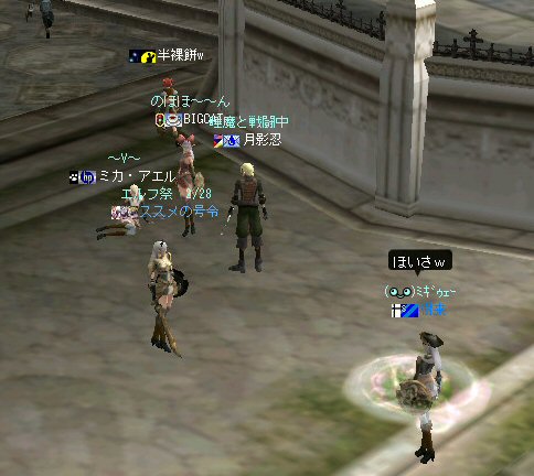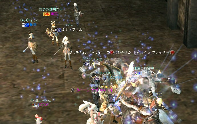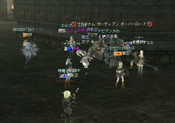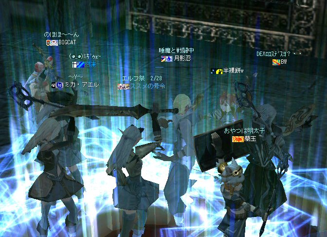 以前、登頂に成功した傲慢の塔への再挑戦だ。 業者の塔としても有名ではあるが、今回行った時にはBOT連中は影を潜めていた。 もっとも、彼らと戯れている時間など無い! 2度目の登頂を狙う! 以前、ブログにコメントしてくれたくせ者さんが参加w (メインが他鯖は半裸餅wさんらしいw ^^;) そして今回は、若干26才のスカベンジャー、半裸餅wさんも参加w (一応縛りで40以上と書いてはあるんだが・・・ゆるいのがノングレクオリティ^^;) 死んでも知らねーぞw って言ってる先から・・・ orz まあ、覚悟の上での参加だろうし、 20代で傲慢の塔に登ろうと言う心意気が素晴らしい! 将来、ノングレード戦隊の主力をになってもらいたい物だwww 半裸餅wさんが今回、火力として戦力になったかは疑問だが、 HPが二桁で助かったり、スポイルが入ったり、 ネタ提供には事欠かなかった事(ネタ戦力?)は確かだw (実際、楽しかったし^^) モンスターを倒して行く所に、今回、特記事項は無い。 PTであろうと、リンクしようと、少ないMPをうまく回して、その階その階をじりじりと攻略し、登って行った感じ。 「安定PT、時々危険あり」 スリルと会話を楽しむには最高のPTだったかもしれないw 以前は2PTで、5階を通り抜けられず、全滅した事もあったのに・・・。 すでに7階。下はかすんで見えない。 8階も通過・・・ 時々、ピンク戦隊になるのは愛嬌だ。 リチャしててタゲを切り替えをミスる事は、ヒーラーなら誰でも経験しているだろう。 眠らされた時に味方に殴られて起きる事もあったしw で、レイドボスの牛がいる階になんとか到着した。 さて、ここからがまた大変。 最後の最大の難関と言ってもいい。 ここを乗り切る(走り抜ける)にはどうしたらいいのだろうか? ススメさんに妙案があるらしい。 以下、ススメさんからの攻略作戦の説明。 ススメの号令: 作戦の説明: 私先頭でmobひきまくって走るので 全mob無視して頂上目指します 支援一切不要、mobのタゲがはがれるまで逃げます。 以上。 要はDVCでの作戦をもう一度行って見たいとの事。 で、タイミングを計って、作戦開始。 ラグ死は勘弁なのでスクリーンショットは無いが、 意外と早くススメさんが逝ったw ・・・ってか早すぎw orz (3K、1Kと連続でダメージを食らったらしいwww) それでも走り出した足は止まらないし、止められないw 先行した人達がモンスターを引きつれ、あるいは召還獣がタゲを取って道を開く。 通路を抜けて、追ってくるモンスターも、 外周の通路にある上の階へ上がる坂道にさしかかるあたりで引き上げる。 以前の仕様変更で、ダンジョンなどのアクティブモンスターは、元の場所へ戻る時間が早くなった。 つまり、逃げているうちにタゲを外して帰ってしまうのだ。 (言い方を変えるなら、槍PTでモンスターを引く事が難しくなった=w=) 現状を見ると、とりあえず、俺は生存。 だが、PTは半壊状態だったw 蘭玉さんが傍で逝ってたのでノーマル復活スクロールで復活。 他の場所でも生き残ったメンバーが死亡メンバーを蘇生している。 くせ者さんの課金切れの時間があと10分ほどとの連絡が・・・急がねばw なんとか無事?全員集合する事が出来、上の階を目指す。 途中の敵も、キツイけど何とかなる。 天使のレイドモンスターは、どこかの集団にでも食われたのだろう。 いなかった・・・。 で・・・登頂成功!! 傲慢の塔2度目の登頂を祝してノングレード帰還だ!! そしてくせ者さんの課金切れw 容赦ない運営の接続遮断によりPT離脱(ちょいと残念^^;) また、機会があったら参加してチョ^^v まあ、なんにしてもミッション完遂できて良かった。 そして、こんな楽しい時間を一緒に仲間(参加者全員)と過ごせた事をうれしく思う。 参加した皆さん、お疲れ様でした^^ノ また、冒険しよう! PR |