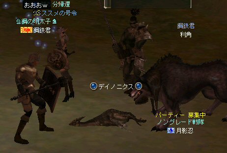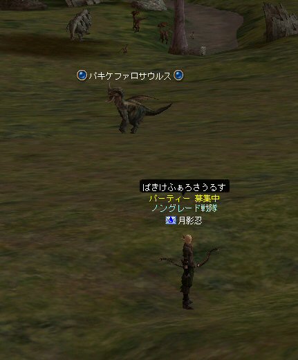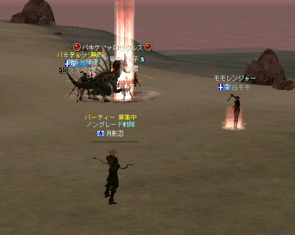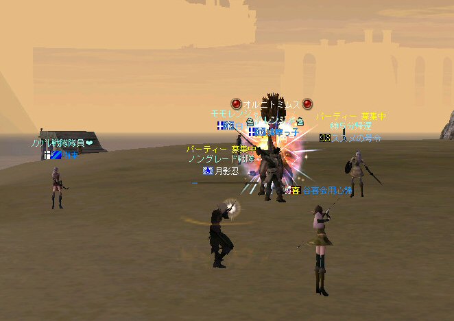 マスターが、年賀状の宛名書き、大掃除、家族の団欒を犠牲にして実現した、 夢のリベンジミッションである。 前日にルウンの港から泳いで渡島した。 船代はかなり高額なので節約。 実際、息継ぎなしで泳いでもいける距離だった。 周辺のモンスターを確認してみたが、名前が赤黒い。 20レベル以上離れているだろうから当然だ。 で、その日は太古の島の船着場で一夜を過ごした。 一人きりの船着場キャンプは寂しいものである。 彼女が傍らにいてくれたら・・・などと妄想しても、空しい・・・。 冷たい月の光の中、夜風が体にしみる・・・。 2007/12/28当日 21:00 少し前からPTMを開く。 もちろんノングレメンバーはいきなり /invite だ。 いつもより、続々と人が集まってくる。 集まったなら早速行動だ。 先ずは単騎を引きで・・・ 倒せる!! 行けるぞみんな!! 次はこいつで・・・ うむ、単騎なら行ける! 70+の人の火力のおかげかも知れない。 割と安定して行ける。強いぞ「ノングレード戦隊」! ならば、今度はPTモンスターにトライしてみよう・・・ で、洞窟をくぐり、洞窟出口付近でわいている小さいモンスターを引こうと・・・ 4586のダメージって何!? @w@; もちろん即死です。自分のHPの値以上のダメージが来てます;w; もう、この状態じゃ自分じゃどうにもならないね。 スキル使って攻撃だの回復だの言ってる間もない。 PTモンスターの引き失敗。 (大体チャームが入らんw) その後も惨劇は続く。 さすがに怪獣島だ。一筋縄では行かない。 そして3匹w 全滅こそ、かろうじてしてないが、壊滅状態w 俺、今日何回死んだんだろう・・・? 怪獣島でのPTモンスターは、今までのPTモンスター殲滅作戦が通用しない。 ヴェロキラプトル レベル86らしい これが3匹つるんでる。 どれが親か見分けがつかない。 最初に動く奴に他の奴が追従しているみたいなので、最初に動く奴が親かと思いきや、 やっぱり集団で来る。 親とか無いのかもしれないが、今のところ情報不足と言う事で。 それにしても、即死するほどのダメージを受けては、引きとか言ってられないかも知れない。 さらなる戦術を練る必要がありそうだ。 58で通常攻撃が当たりにくいのも問題かも知れん。 ダブルショットでも400から500くらいのダメージだった。 とにかく硬い。 そして、倒せたとしても、通常の狩りで得られる経験値とそれほど変わらない。 俺で約4000くらいだったかな。 恐らく効率重視の人達は、ここで狩りはしないだろう・・・ まあ、残り時間も少ないのでPTモンスター次の課題として、 単騎を狙おう。 で、11時を回った。そろそろタイムアップだな。 恒例のノングレ帰還・・・あれ、なんで隙間が開いてるんだ? 1、2、3・・・7人? 俺「あれ?一人足りなくない?」 みんな「みんないるよー」 俺「???」誰がいないんだ?・・・フェイさんか みんな「フェイさんいるよ~」 俺「ええええ?」 確かにPTリストには載っているが、目視できない。 俺「ちょっとリスタしてくる」 みんな「いてらー」 バグだったのだろうか? INしてみると、そこにフェイさんは居た。 それにしても、今回は元祖 「ノングレードで逝こう!」になってしまった^^; まあ、こんな事もありますが、メンバーの皆様、お付き合い下さいませ。 お疲れ様でした。 PR |