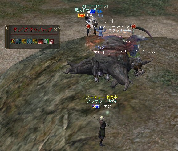 サイレントバレーのPTモンスターと戯れた。 PTモンスターとの戦闘と言う意味では、ノングレ戦隊定番の場所だが、 こちらのレベルが上がってるからと言って油断できない場所だ。 ちなみにウルフは即死するので、育てる気があるのなら出さない方が賢明だ。 せめてBMWにしてからね^^; 先週から言ってるが、 悲鳴の沼あたりのPTモンスターが気にかかる。 果たしてノングレ戦闘がどれくらい通用する物だろうか? 告知してから、数日経過した今日の ビュー:163 ほとんど誰にも見られていないのだろうか? あるいは、ノングレ関係者のみの閲覧とも考えられる。 163人(もしくは163回?)も見に来てくれているのかぁ・・・ そう考えると、まんざらでもない。 で集まったメンバーでシレノスを経由して悲鳴の沼へ。 途中、シレノス関連を倒しつつ進む。 俺からすると、皆、真っ赤なのだが、もうそれも日常。 以前は、ピンクのモンスターでもびびってた事があったっけ・・・ バルカシレノス駐屯地エリアと死霊の関門を通過。 昼時間だったので、アンデッドモンスターはいませんでしたw ・・・で、いよいよスタッカート達の聖地へ。 クエストモンスターらしい・・・ 縁の無いクエストにはトンと疎い。 意外と黄色だったのに驚きつつ。 やっぱり赤いのもいるわけで・・・ で、ドローンが分裂する凶悪な奴らしい。 (前回は、血盟戦布告トラブルで、じっくりモンスターを見る余裕も無かった・・・) 分裂したw そして・・・り・・・利角がwwww この辺のモンスターは、あまり縁が無いので特性がよく飲み込めずにいる。 弓耐性の無いスタッカーとは、HPが減ると仲間を呼びに行くらしい。 で、たくさん襲ってくるらしい。 今回、樹来さんはリコできない職なので、全滅の可能性もある。 回りは皆、慎重に単品引いては料理。 おかげで、危険度もそれほど高くは無い。 しかし、未知の恐怖は払拭できない。 多分、体験しないと真の恐ろしさを理解する事は出来ないだろう。 無難に狩りは進行していくが・・・ ちょいと物足りない。 ↑これは・・・・見ただけで怖さが伝わる。 こんな所で狩りする奴はいるのだろうか・・・(閑古鳥鳴いてるし) 個別に戦うには、倒せるモンスターなので問題ないというか、刺激不足。 しかし、だからと言って集団で来られると勝ち目が無い。 個人的には、遊びにくいフィールドかなぁ・・・。 で、終盤、スタッカートの巣をのぞいてきました。 HP4倍のモンスター達。 一部、単体もいるらしいが、他は分裂する。 4倍で分裂・・・かつ、リンクするとなると・・・ピンポンダッシュ戦法? (逃げてたんじゃ倒せないよ;w;) うーん、倒すためには火力が圧倒的に足りない;; 多分、刃が立たないのだろうなぁ・・・ どこかのクラハンだろうか・・・適正装備で侵入したPTがいた。 ノングレード帰還で〆ている途中・・・ その人達がスタッカート達を引き連れて通路に逃げ込んできた。 幸い、ダンジョン内のモンスターは、出現場所から離れるともとに戻る帰巣本能が強化され、 プレイヤーが、ある程度逃げ切ると追撃を止め、元の場所に帰っていく。 一瞬MPKか!?と思ったのは俺だけじゃないだろう・・・。 言い方を変えるなら、適正装備でも、普通に逃げ出す危険な場所と言える。 危険な場所だが、気になる場所でもあるか・・・。 なんか面白い遊びが出来ないかな? ま、それは次の課題として、本日は終了。 参加した皆さん、お疲れ様でした^^ノ PR