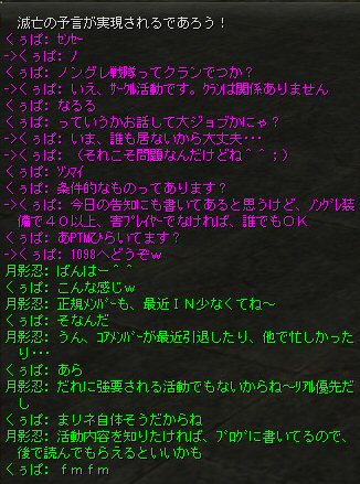 相変わらずの人気の無さか・・・ 21:30の時点で誰も来ない・・・ まあ、ゲームが大型アップデートで変わってしまった・・・と言うのはあるだろう。 以前とは、ゲーム自体が違うのだからニーズも減って然り・・・なのかも知れない。 そう、今あるのは以前の「リネージュ2」ではない。 BOTも増殖し、低レベルの狩場は・・・ あれ? BOTおらんやんw 掲示板のスレッドだとBOTが蔓延とか・・・傲慢も例外ではないはずだが・・・? (前回は居たはずw) 考えられるのはBANされたか、 BOT育成されたキャラクターがここでの育成を終えて次の狩場に移ったかだろう・・・。 まあ、今の俺にはどうでもいい事だな。 BOTツール作ったり販売したりするのは業者の仕事(規約違反を公然と推奨して売り上げアップを目指す)。 BOTツールを購入(規約違反w)したり、アカウントを購入(規約違反w)するのは不正プレイヤーの仕事。 BOTうぜーとNCJに情報提供をするのは、一般ユーザーのボランティアで、 リネ2内のBOT排除は個々のプレイヤーの趣味(プレイスタイルの一種)。 リアルでのBOT排除と不正プレイヤー排除はNCの仕事だ。 そして、俺の仕事は「ノングレード戦隊」の布教活動www (マテ あまり積極的な布教活動してないから信者が減る一方じゃのう・・・ まあ、ソロでも何とか楽しむさ。最初はソロで創めたノングレ活動だ・・・ などと傲慢5階を目指して移動していると、WISが・・・ 興味があるらしい・・・ え?二次転職どころか一次転職もしてない?初期状態のまま?ふーん・・・ まあ、20以下じゃ、傲慢は厳しいと言うか、即死かな・・・? くぅぱさんに、PTに参加してもらった。 どんな人なんだろ?と思っていたら、ドワーヴンファイター。俗に言うドワさん。 なーんだ、ドワさんか。 ドワさんならHPも高いから即死は無いかな・・・? (この時、まだ、俺はその異常さに気付いてなかった・・・) 攻撃(火力)は10以上離れていたらほぼ絶望的(当たらない)ではあるが・・・ そか、レベルが低いならPTの設定・・・あれ? 40以上で設定していたはず??? え? レベル54のドワーヴンファイター@w@; ドビ鯖に、一次転職をしていないキャラクターが他にも存在していたのかw (以前参加してくれたヒューマンのファイターの彼を思い出していた・・・) これは、ノングレード戦士に通じる物があるw そう、ノングレード戦隊では、経験値とモンスターからのドロップ品は、 ほとんどおまけ程度の意味しか持たない。 無い事の方が多いと言うより、 そんなものを期待していると、「ノングレード戦隊なんてやってられんw」と言う事になるからだ。 (つまり、廃人プレイヤーは絶対に来ないw) いや、期待が無いわけじゃないが、期待すれば失望も大きいってのも多少はある。 (だから人気が無いのかも・・・) しかし、ノングレード戦隊の目的は、「損得」よりも「面白い何か」を優先する。 今の所、 ・「生き残りをかけたスリル」と「実験」がメインだ。 そして大事なのが、 ・「チームワーク」 例え、見知らぬ相手であっても共に何かを成し遂げようとする気持ちがあるなら立派な仲間だ。 俺のスキル、「暴走」は、PTをしばしば危機的状況に陥れる事があるので注意が必要だ。 困難を乗り切るのにチームワークは必須だw (マテ 心構え的には、 ・「あるもので賄う」のが基本。 不足を嘆いても意味が無いのだ。逆に、不足気味の方がみんな知恵を使う。 つまり、 ・「補助魔法は無くて当たり前」 ・「死亡するのも当たり前」(死なない努力、生き残る努力は当然するけどね) ・「リザも無くて当たり前」(無印の復活スクロールすら無くて、最寄る事があるのだ) ・「職差別無縁(全員不遇職)」本来、ノングレ戦隊で、職差別すること自体、ナンセンス。 ・「血盟も同盟も無関係」 「戦争や血盟戦」というゲームをやってるなら仕方ないが、リネージュ2と言うゲームはそれだけのゲームじゃない。 同じフィールドを使っていても「ノングレードで行こう!」と言うゲームでは関係の無い話だ。 ・「赤字になるのも当たり(出費の割りに実入りは少ない、無い事もある) 全て、無い物と考えるなら、あった時にはその「有難さ」が実感できる。感謝は人間関係の基本を成す。 言い方を変えるなら、 ・「レベル制限はあるが、ノングレード装備でノングレ活動を妨害しないのであれば、誰でも参加できる」 と言うサークル活動なのだ。 という訳で、レベル54のドワーヴンファイター、充分な参加資格である。 その後遊星盤でゴーさんが参加。 トリオで傲慢攻略だw 3人で傲慢最上階を目指すw だが、5階入り口で精一杯www 先に進めないwww orz まあ、今日は、ここで狩りを行うのがいいだろう。 LV1スポイルも時々決まり、ポケットマネーの少ないノングレ戦隊を潤わせてくれる。 有難い事だが、さすがに他のPTとか入りにくくなってるらしい。 ネタキャラとしては、申し分ないが、効率重視のPTが尊重されている昨今では、厳しいものがあるのだろう。 MPがすぐに底をつくのは当たり