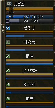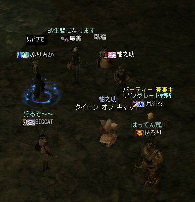今晩は、DVCに行こうと思う。 初参加のせろりさんと、 日本の経済と雇用問題の現状について意見交換中・・・。 少なくとも今日はペアにはなるな・・・ちょっとホッとする月影であったw。 だが、参加者は一人に留まらなかった。 シルレン、グランドカバタリ、ウォーロック、ソードシンガー、エルダー、プロフのPT構成。 一応普通のPTの体裁は整った・・・って言うか贅沢なPTでない? 22:30頃、さらにシリエルの癒美さん参加で、さらにPTが強化される。 かなり奥まで行けるだろう・・・道にさえ迷わなければw 当初、俺の目から見て緑だったモンスター達も、白や黄色へ。 かなり内部へ侵攻してきている。 3次職の人だと、まだ薄青だろうか。 それにしても、初期村のモンスターとはHP量も硬さも能力も違う。 真っ青でも油断できないのがノングレード戦隊の醍醐味?だw 初参加の人が多いにしても、連携はなかなかいいPTだ。 後衛職が、眠りと足止めでPTモンスターを孤立化させ、単品処理を行う。 ノングレード戦闘における基本だ。 カリックあたりになると、流石に痛い;w; 遠距離攻撃してくるモンスターが、特に厄介だ。 ただでさえ硬いモンスター達に対峙して戦闘している時に、 攻撃範囲外からの追加ダメージが半端ではない。 だが、ある地点から、進むに進めない状況になった。 以前、ススメさんが特攻作戦で切り開いた地点。 ここはやはり鬼門なのだろう。 モンスターが密集して湧いている。 単品処理をしようとするんだが、必ずおまけが付いてくる。 物理系ならまだいいが、遠距離攻撃系なので性質が悪い。 モンスターがたくさん湧いているところに居て、 こちらに近づいてこないw 行けば当然、周りのモンスターも攻撃してくる・・・。 厄介だ。 そんな状況下でも、少しずつ相手を削って見通しを良くして行くPTメンバー。 だいぶ空間が開いてきた。 空いた空間にモンスターが湧いてこない今を逃したら、前には進めないのでは無いだろうか・・・? で、みんなで一歩前進、前へ進んだ・・・だがw 「全滅」= Mission Fail. これは、モンスター達の罠だったに違いない。 リコしようとしているエルダーも狙われ、次々と・・・。 見事な連携の湧き具合だった・・・ という訳で、今回のミッションは失敗;w; でも、ノングレード戦隊に参加するメンバーは、総じてしぶとい=w=b 俺的には、みんなのおかげで楽しい一時を過ごす事ができた^^ 一緒にプレイしたメンバーに感謝(-人-) ありがとう。よかったら、またよろしく^^ PR