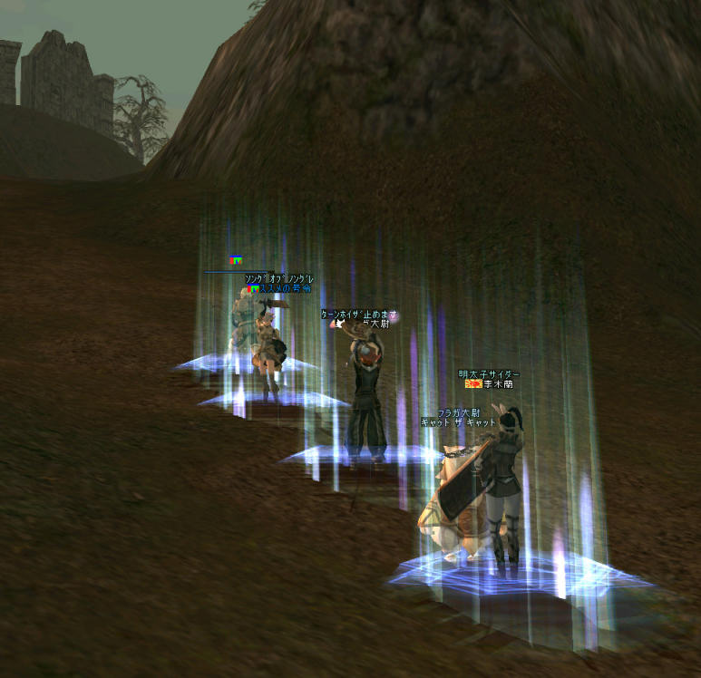 2007/01/18(木)21:00~ 『前回も出来たから、今回も大丈夫』と言う根拠の無い自信。 『危ないかもしれないけど、まあ行けるでしょ^^』と最初から飲んで(ナメて?)かかる姿勢。 しかし、ナメてかかって痛い目を見てもへこたれないのがノングレード戦隊のくおりてぃーと言うものだw 今回の懲りない面々 猫使いさんの参加は初めてかもしれない… そして、その見慣れないバフw シリエルバフももらい、自己バフも加えて目指す敵に挑むのだが… まあ、なんと言うか、『正月ボケ?』 開始早々今回も、逝ってしまった… つwT;) 珍しく全滅… で一度全員で最寄って再集合。 単純だと思っていた『チャーム作戦』が色々問題がある事が判明したのが前回。 で、回避する方法があるのかと言うと…うーむ^w^; 死んだところで『うははw』ってな物で… と言うか、その『痛い目』が快感だったりするあたりが『危ない集団』だと思う今日この頃…。 まあ、俺個人に関して言えば、デスペナルティーで経験値が下がるのは正直痛い。 あんまり、PMが俺を使ってくれないから、復旧が出来ないのだ。 死亡しても、『近くの村に最寄る』か、ノーマルの復活スクロールで復活するのが当たり前で、 リザとか頂いた日には、その人が女神(女性キャラ限定)に見える。 そのレベルが1だろうが2だろうが『ありがたい』と感じられる感覚は尊いモノだと思う。 (それが6とか7とか9とか言うレベルだと、もう本当に神の領域w) そう、我が戦隊で唯一の蘇生術を持っているリザレベル2の女神までもが犠牲者にw 蘇生はノーマルスクしかありません;w; ごめんね蘭さん><; 見ての通り、モンスターは真っ赤だ。 優に60を超えている。 チャーム作戦でタイミングが悪いと半壊の状態になるのはすでに日常化しているw しかし、足で逃げて全滅を避けるようにしている。 全滅=負け 俺の中の公式(マイルール)だ。 半壊は引き分け…かな? シルレンは、攻撃力は高い。 しかし、当たらなければ相手を倒す事は出来ない。 幸い、スキルのダブルショットが外れる事はほとんど無い。 なので、戦闘が始まると、当然ダブルショットを全開で使う。 スキルを使った後のディレイ(攻撃準備時間)の間に通常攻撃を行っている。 しかし、その通常攻撃が当たらないのだw あと一発当たっていたら…。 いや、言うまい…。 開始時に30%あった経験値が… つw<;) 死ぬ予定じゃなかったんだけどなぁ…。 一時は、50%あったのに…56が遠い…。 そしてまた、引きに行ったススメさんのすぐ脇にMOBが湧いて、あえなく逝った所。 ススメさんの周りには、先ほど湧いたアクティブモンスターファミリーが2PT陣取っている。 『ススメさん救出作戦』だ。 作戦内容はこうだ。 1.可能な限りバフをかけ、チャーム等で引いて近くに居るモンスターをススメさんの周りから排除する。 言わば囮だな。引いたモンスターは出来るだけ離れた場所へ連れて行く。 2.その間に他のメンバーでススメさんを復活させる。 3.俺が死なずに引いたモンスターから逃げ切れれば俺達の勝ちだ。 最寄ろうとするススメさんを制止して、ストライダーを準備。 あとは、FAでチャーム引きもしくはエンタ引きだ。 俺の脚なら逃げ切れる。 って準備しているうちに、蘭さんのリザでススメさんが復活w 何もしないうちに『ススメさん救出作戦』は終了した…。 (せっかく準備したのに… orz) その後、 orz を (>@<)ノに変えて、 ススメさんの回りに湧いたモンスターをみんなで血祭りにあげたのは言うまでも無い。 本日のミッション終了w 参加した皆さん。お疲れさまでしたw PR