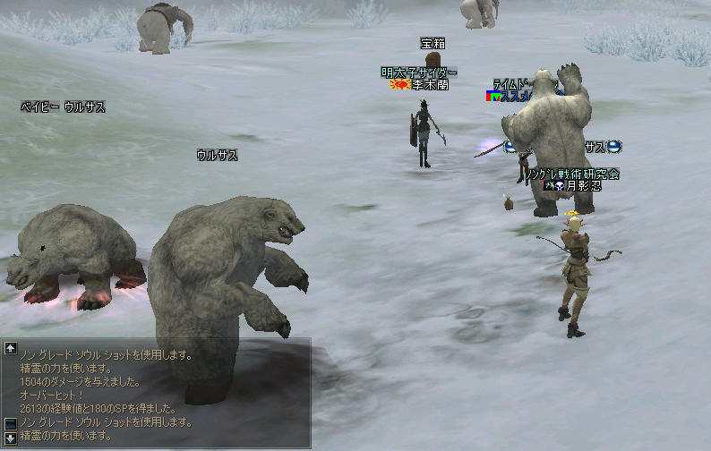 ノングレ戦隊では秘密会議が… 月影忍:慎重に行けばいけなくは無さそうに思うが…どう思う? 李木蘭:たぶんおkw ススメの号令:うぃ~す! 作戦は決まった。 前編で5名で戦っていたウルサス親子を、3名で倒せるだろうか? 戦闘の難易度が、少し上がる。 「多分大丈夫」内なる声がそう囁く。 モンスターのHPの減り具合を、5名戦闘の時に観察していた。 弓の攻撃力は結構ある。 行ける! 手順は一緒 チャーム>ルーツ>各個撃破 ソロだと危険だが、3人いれば何とかなる。 レベルだって、PTからみれば適正だ。 ちょいとピンクだが、問題ない。 油断は禁物だが、狩れる! 一番問題なのは、やってもいないのに、やる前に「無理かも」と思ってしまう先入観だな。 (俺もよくやるんだが…) 「以前ダメだったから」「とても難しかったから」と思い込んで、行動しない事が問題。 (だから何でも特攻とか言うのは違うからw ここポイントね!) 大切なのは「どうやったら出来るか」と、考える事だと思う。 その為には、自分達の実力を知る必要がある。 実力を知るためには、「試して見る」しか…方法が無い@@; (たしかにある程度の火力が無ければ話しにならない事は確かだ) 時に火力ばかりが重視され、効率重視のPTも多い。 ただ、接続時間は平等では無いし、ゲームに参加しているプレイヤーの価値観も違う。 どうしても、装備とレベルに格差が出来てしまうのは、仕方の無い事である。 高額、高性能の装備に憧れ、それを手にするために努力するのは、当然の成り行きだ。 でも、装備やレベルの問題でゲームに参加しにくくなるような風潮にはしたくない。 だから、装備はノングレード。 レベルは2次転職以上ならだれでもOK牧場(死語)。 性能の上限が決まっているからノングレード。 安い武器しか手に入れられないなら、それでもOK。 (本人が準備可能な、なるべく火力の高い武器ね^^;) なので、ノングレ参加者で装備をとやかく言う人間はいない。 そして、 そのノングレードの限界を調べている(楽しんでいる?)のが我々のサークルと言う事になるだろう。 ノングレードの限界とは一体どんなものなのだろう? 確かに、そのPTでの戦闘限界レベルは存在する。 超えれば全滅。 楽しいのはその狭間だと思う^^; 今回は、楽勝だった(ちょっと物足りない^^;)。 これも、試してみたから分かる事。 と言う事で、「ノングレードの歩き方」と言うか「楽しみ方」を今後も探求していこう。 ミッション:『冬の迷宮探索』終了 ノングレード戦隊は、『冬の迷宮』を後にした…。 サークルメンバーのみんな、お疲れ様^^ 今後もよろしく^^ PR