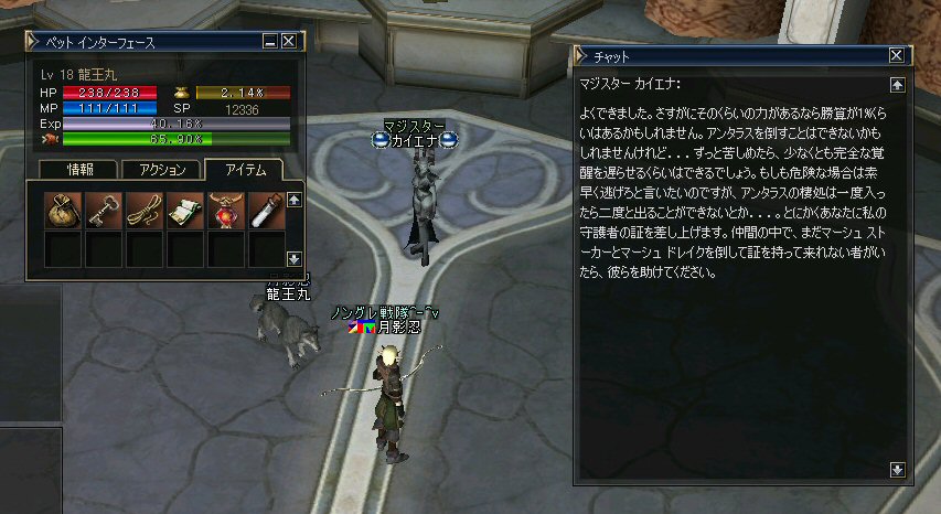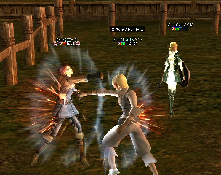 ノートパソコンだと、画像処理が追いつかず、レンダリングされない場所(個人所有の特定のノートパソコンらしい)。おまけによく落ちるらしい。PCのスペックが追いつかない=ゲームできない禁断の場所。 テレポートは出来るが、そこは闇の世界。 道には点字ブロックだって無い。 頼れるのは仲間の援護のみ・・・ 隼人「鏡はPC落ちるので、パスします^^;」 待たんか!こらw あきらめるの早すぎw それも選択肢の一つでは有るが、出来る出来ないはやってみた結果で判断すればいい。 チームを組んだからには、一緒にその難題を超えねばならない。 ノングレード戦隊に不遇職はいないのと同様、集まったメンバーで知恵を絞り、難題をクリアするのが俺達のルール。 ノングレード戦隊は、仲間を見捨てない(はず)。 一人では困難(あるいは不可能)だからこそPTを組むんだ。 ターゲットは、ハリツ リザードマンのオーバーロードもしくはシャーマン。 彼らを倒し、出現したクエストモンスターを倒すとクエアイテムが手に入る。 俺とススメさんでシャーマンを倒し、クエモンを出現させる。 俺達のクエアイテムはすぐに手に入った。続いて隼人さんの支援。 彼は、盲目の中、追尾で移動しアシスト攻撃でクエモンを倒し、アイテムを取得した。 ミッションの第一段階クリア。 最初にあきらめていたら、この結果は手に入らなかっただろう・・・。 ゲームはリアルよりリスクが少ない。ゲームの中で冒険しないで、いつ冒険するw 全員アイテムを取得する事に成功したので、鏡の森、撤収。 通常なら、鏡の森を北上し、巨人の洞窟目指して移動するところだが、 さすがに途中にアクティブモンスターが居る上(弓モンスターなので、余計性質が悪いw)、地形も凹凸や障害物が多数存在する。50前半で、PCがまともに動かない状態なのに、北上するのは危険(無謀)すぎる。ここは安全策を取ろう。 徒歩の移動は作戦時間も考慮して、やめた。 猟師に帰還した俺達は、デイジさんと合流。 合流はしたものの、デイジさんはクエを受けてないw 今回のクエはパスらしい・・・ ゲートキーパーを使い、フェアリー北へ飛び、帰還スクロールでアデンへ・・・。 猟師からアデンに飛ぶよりは安上がりなはず・・・。 そこから忘却の平原へ飛んだ。 そこのドレイクとガーゴイルからクエアイテムが取れるのだ。 PCが正常に戻った隼人さんも一緒にクエアイテムをゲット。 次は巨人内部の熊と蜘蛛。 移動する。NPC居るところが進入経路の目印だ。 NPCのところで二股に通路が分かれており、いつもは右側の通路から行くんだが・・・ モンスターがやたらいっぱい集まっている。 多分誰かが引いて逃げたか、死んだかしたのだろう。 火力を考えると、リンクするこれらモンスターを相手にする事は不可能と判断。 左の通路へ・・・ がらがらやんw まあ、向こうの通路にみんな行ってるんだがら当然か。 進入し、橋を渡って建物内に入ろうとしたとき、1PTが入り口に。 休憩中なのか? 一応、熊と蜘蛛を少し狩る事を伝え、内部に進入。 程なくクエアイテムはゲット。 アデンに帰還して、シーレンへ。 ここでサチコを倒し、クエモン出現。 このクエモンは、とても弱いので、あっという間に殲滅し、全員アイテムゲット。 これで、狩りによるアイテム取得は終了。 アデンでNPC2名と会い、アイテムを交換してもらう。 で、俺は積載スペースが持ち物で80%を超えていて、クエ進行が出来ない事が判明w PTLをメンバーに頼み、ログオフ。 急ぎ他の兄弟からペットを借り、再びログイン。 ペットに荷物を移動し、無事クエが進行。アイテム交換に成功した。 その後、猟師の村へ移動。 猟師のNPCからもアイテム取得。 象牙の塔のNPCからもアイテム取得。 最後にガブリエルお姉さんに話をして、アイテムを交換し、前半終了。 デイジさんはアデンから移動していない。 途中、ススメさんが落ちて戻ってこない。 隼人さんも、歩行速度のせい?かなかなかギランに来ないw これほど、バラバラになった事は今まで無いw しばし待つが、いつまで経ってもススメさんが戻ってこない。 全然戻ってこないwww みんな、ばらばらなので、モンスターレース場にて集合 ススメさんを待っている途中、一休み。 とりあえず、ここまでで、作戦時間としてはタイムアップ。 せっかくなので愛しのデイジさんをかけて、隼人さんと漢の勝負をw 相手に与えるダメージよりも、回復速度の方が速いらしい・・・ 勝負にならんw ススメさんの書き込みが掲示板にw どうやら、ネカフェで接続障害がでているようだ。 という事で、今回の活動終了。お疲れ様でした。 次回はアンタラスクエ後編w PR |