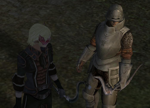 知る人ぞ知る結構有名なクエで、 『補給品』は、1個あたり100アデナらしい。 1個でも持って行くと、基本報酬として6,000アデナもらえる^^v その他に、まれに『怪文書の切れ端』と言うアイテムが手に入る。 これが5枚集まると、自動的に『補給証書』へと変化し、1枚あたり6,000アデナの報酬になるらしい。 恐らくは、キノコクエより儲かるだろう…という事で検証。 城の警備兵か…寝る間も惜しんで24時間働いて、城主からたんまり給料貰ってるんだろうな…。 月影忍 「おうおう、警備兵の兄ちゃん、金出しな」 コルマン「お前にやる金など無い!とっとと失せろ!」 月影忍 「な、何だとw、て、てめえ、俺をなめてんのか?」 コルマン「見窄らしい装備のお前が、私たちの相手になれると言うのか?」 月影忍 「みすぼらしいとは何だ!みすぼらしいとは! これでもノングレード最強の弓だぞw」 コルマン「ここはノングレードの装備で戦えるような、楽な戦場ではない。 悪い事は言わん、さっさとエルフ村に帰りたまえ」 月影忍 「装備を早く良くしたいから、こんな辺鄙な所まで出稼ぎに来てるんじゃねえか。 金稼がねえで故郷に帰れる訳無いだろw」 コルマン「もう一度言うが、ノングレードで…」 月影忍 「待った!さっきからノングレ、ノングレってあんたに一体ノングレの何がわかるって言うんだ!」 コルマン「ほぅ…ノングレで何ができるんだ?」(薄笑い) 月影忍 「こう見えても、少しは腕に自信はある。 火力は無くとも技術でカバーできるんだよw ノングレ装備をなめんじゃねえ!」 コルマン「ならば、ノングレで国立墓地のモンスターを見事倒して来て見ろ。 倒してきたなら、報酬をやろうじゃないか」 月影忍 「おし、その話乗った!。倒したら報酬だな。約束だぞ!」 コルマン「フッ、いいだろう。墓地で己が未熟さを知るがいい!!」 ちっ、変な展開になっちまったぜ。まあ、成り行きだ、やったろうじゃないか! まずは、お前から血祭りだ!! って血祭りに遭ってるのは俺かw 何とか倒して、「補給品」を手に入れた。即行で帰還する。 月影忍「へへ、ザマア見ろ。ノングレード戦隊をなめんなw (痛ててて…T-T)」 月影忍「おら補給品だ。金よこしな」 コルマン「ww 一個か!?」 月影忍「へっ、一個でも約束は約束だ」 コルマン「ちっ」 月影忍「少しはノングレードを見直したか」 コルマン「ふん、大方、他の冒険者狩ろうとしていたモンスターを横から攻撃したか、 たまたま運が良かっただけだろう」 月影忍「何だと、こいつ、俺はそんな卑怯な真似はしねぇ!」 コルマン「なら、私が納得するまで補給品を手に入れてくるんだな」 (コルマン:補給品は、城に持っていけばもっと高額で引き取ってくれるし、 こいつ、案外利用できるかも知れん…)ほくそえむコルマン。 月影忍「ほう…いいだろう。やったろうじゃないか。ほえずらかくなよw」 コルマン「ふん(薄笑い)」 この時俺は、まんまとコルマンの口車に乗せられ、利用されている事に全く気づいていなかった…。 1バフで3往復した。 NSS:273発× @8a=2,184a 弓矢:41本 × @2a= 82a 帰還スク:3枚 ×@480a=1,440a ------------------------------- 経費合計:3,706a クエ報償:6,100a×3回 =18,300a ドロップ:2,727a = 2,727a ------------------------------- 収入合計:21,027a 収入:21,027a - 経費:3,706a = 利益:17,321a 1バフでこれは…おいしい ^^; その後、ファテイルさんとのツーショット。 ノングレード装備で1時間ほど二人で普通に狩りをしてみた。 ソロは、本当に作業になっている気がする。 ソロよりはPTの方が楽しいのだが、普通の狩りをするなら、通常の武器でやった方がいいな^^; やっぱり。 狩場は制限されるし、ダメージでかいし… 月影忍「やっぱノングレはきついね~」 ファテイル「だねw」 月影忍「でも、まったく狩が出来ないと言う訳でもない」 ファティル「うーん、戦闘だけど狩じゃない気がする^^;」 月影忍 … ? ファテイル「むしろ修行?」 月影忍 … ! …言われてみれば、確かにそんな気がする。 |