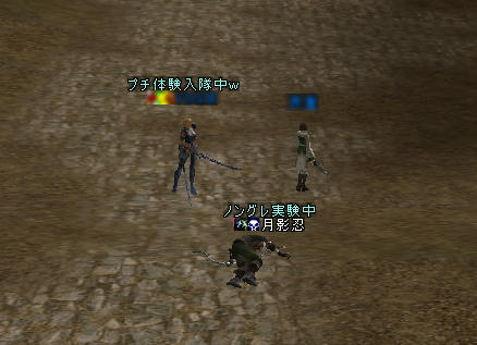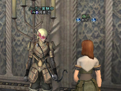 今日は1時間連続でやってみよう。 コルマンの口調が、心なしか丁寧になってる気がする。 ノングレ戦隊の実力を認めたのか!? コルマンの所からストライダーに乗って走っている人がいたんだが… 追い抜いてしまった… シルレン早えええええええええええええええええええっ!! で、気合入れて狩ってたのはいいんだが… ウッドン少し軟らかい? まあ、普通CとかB装備で来る所だから… ノングレードって言う所自体問題かもしれんが… 1ENDです。 今日はモンスターに食われた;; 通りかかった人に助けて頂きました。ありがとう;; で…帰還して、 ホリーの所に行ったら、大口の取引相手がw 怪しげな名前、そして一人のキャラクターに連なって移動する集団。 業者だと思うが証拠は無い。 もっとも、一般プレイヤーから見て、怪しいプレイヤーと言うだけで、それが本当に業者かどうかなんて判るわけが無い。 ただ、言えるのは、「こいつらは、どう見ても遊んでいるようには見えない」 この一点に尽きる気がする。 本当に業者なら、この世界から自主的に消えて欲しい。 月影忍「ホリー!!いくら大口の取引相手でも、そいつらについて行っちゃダメだぁ!!」 (やきもち?) 今回は9往復(帰還スク一枚無駄にした;;) 消耗品使用実績 ----------------------------------- 矢:134本 NSS:1169発 POT:15本 帰還スク:10枚 -------------------------------------------------- 経費合計:20,360a 終了時残金:107,850a - 開始時残金:30,602a = 現金収入:77,248a 現金収入:77,248a - 経費:20,360a = 利益:56,888a 開始前と終了前の状態 結構稼げてる気はする。