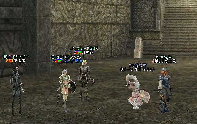 「たまにはノングレ以外もOKで逝こう! 」と名を打って見たものの、 集まったのは例のごとくサークルメンバーのみw 何度かアデンで叫ぶものの反応は無し。 ネタ装備で狩りに行こうと言ってるだけだから、ノングレよりも縛りは薄い。 言い方を変えるなら、「ファッションPT」みたいな感じになるのだろう…。 まあ、ファッションに疎い俺が話すことではないな^^; 少なくとも今回は「ノングレードで逝こう!」では無い事だけは確かだ。 今回の企画はサークルメンバーのススメさんから、「ノングレじゃなくてネタ装備で参加していい?」と聞かれた事に端を発する。 俺の中で、 「ネタ装備か、おれもダークエルヴン弓(D装備)を使ってみたいなぁ…」 以前、エルヴン弓のドロップを手に入れ、マモンの鍛冶屋に交換してもらったDグレード武器だ。 自分のお気に入りの装備で狩りとか出来るといいよなぁ…。 ノングレだけだと、ファッションに厳しい人では、気に入ったデザインのコーディネートが出来ず、それが理由でノングレ参加を敬遠する人もいるらしい。 参加人数も多少増えたらいいよなぁ・・・ たまにネタ装備PTもアリかな^^ 普通のPTと何が違うのか… 効率を求めずにネタに走るところはノングレと共通する物があるが、狩り自体は、ノングレよりも有利なはずだ。 さて、そんなこちらの思惑とは別に、参加者が集まらないときには集まらない^^; 結局はいつものメンバーかw@@; (それだけでも十分ではあるが・・・) 時間だ。 さてどこへ行くか。 まあ、今回はノングレよりも多少はリッチな装備なので、因縁の傲慢5階あたりから攻めてみようか。 過去、何度かノングレでトライして通過できなかった傲慢5階。 他のPTの後ろについて、通過した事はあるものの、 そのときはノングレではなかった(そういう意味では今日も同じか・・・)。 ノングレ戦隊のチャレンジ精神とは別に、現実問題としてモンスターとのレベル差は結構大きい。 攻撃が成功する確率も低いし(補助魔法がないと、攻撃が結構外れる=当たらないw) 普通は50代では来ない所だとは思う^^; だから、面白い><b ノングレード装備だと、余計にわくわくする・・・。 あ、そうか、だからノングレードなのか・・・。 (↑いまさらなんだが、自分で納得 ^^;) 最近マンネリ感が自分の中にあって、 ただ、狩りをしているだけじゃ面白くないんだよね・・・。 「ノングレードで逝こう!」も、目新しさが見えなくなってきていて ちょっと気持ちの上で停滞気味。 狩場も大手の場所は行ったし、いまさらどこへ? PTメンバーが変わる事で、同じ狩場でも難易度は変わるけど、それだけの話。 思ったほど戦術の幅も増えない・・・。 うーん、頭打ちだ… それで、今回の企画となった訳だ。 いつものメンバーです。はい^^; で、5階は通り過ぎる事が出来てしまいましたw (結構PTがいて、モンスターを狩っていてくれたおかげw) 少し狩った後、フラガ大尉が諸事情で帰還。 残りは3名…@@; ここ、5階じゃなくて6階だってばw き・・・危険すぎるwwww なんて話は置いといて、3人で狩れるか実験だw …倒せた@@; さすが俺たちノングレ戦隊w 休憩中… そ…その後姿は…女子高生@@?(セーラー服?) この、ネタ装備をしたくて企画を出したススメさんであった… モンスターがスタンを使ってくるので時々危険な状態にw おまけに、よく見ると「弓武器耐性」だし@@;↑ それでも、狩れないレベルでは無い事は分かった。 今度はノングレで対戦してみたいものだ…。 きっと危ないだろう…www ネタ装備の正面。↑↑↑ やっぱり女子高生だ^w^; ミッション:「たまにはノングレ以外もOKで逝こう」終了 参加メンバーのみなさん。お疲れ様でした^^ PR