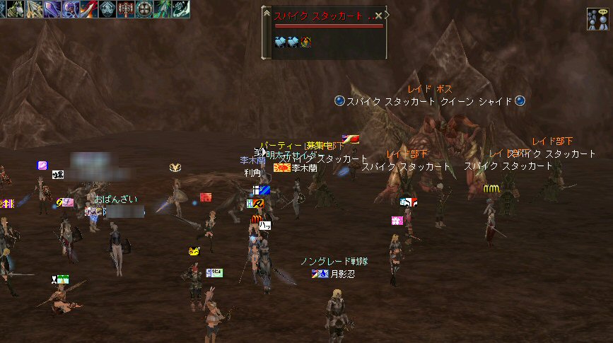 『第一回エルフ祭り』 公式HP 友人の樹来さんとススメの号令さんの企画、主催のイベントだ。 イベントの内容はシンプルだ。 エルフ村から徒歩(競歩?)でダークエルフ村を経由して、海を渡りルウンへ。 ルウンからは亡者の森を抜けてスタッカートの巣の奥地へ赴くと言う物だ。 ダークエルフの森では、呪いでもかけられているのかエルフ戦士達が次々とクリエラ落ちに。 そして海の中でもクリエラで落ちる人がw 溺れそうになった人も居たが、何とか無事?ルウンに到着した。 (クリエラは仕様です) 中にはエルフ村のクエストモンスター「エヴァのユニコーン」を引いてきた人も。 ダンジョン系やフィールドにいる通常モンスターは引いてもすぐに帰ってしまうが、 クエストモンスターは対象外らしい。 これはノングレで使えるかもしれない。 亡者の森は昼時間だったので、危険度は少なかったと思う。 ほとんどネタ出演の人以外は高レベル者な事もあり、すんなりと通過した。 夜にしか出ないレイドモンスターはパスされた。 (時間的に合わなかったのだろう。クリエラ地獄で時間もかかったし・・・) で、奥地のレイドモンスター「スパイク スタッカート クイーン シャイド」を、 7PT56人で討伐(多少誤差あるかも)。 流石にノングレで討伐は失礼だと思ったので、本装備で俺も参加した。 おまけにTLらしいw マクロで /nexttarget(次の標的)コマンドを入れて対応しようとしたんだが、 途中でフラグが立ったせい?なぜかモンスターではなく、プレイヤーが選択され・・・orz グダグダのTLになって、かつ、俺がレイドにタゲられてENDした=w=; 一応、ドロップもあり、協賛してくれた人達からのカンパもあってオークションが開催された。 時間的に厳しい人や、ネタ参加の一部の人達は不参加となったが、 サイコロ使ったゲームや秒読み0で手を上げるゲームで、景品をゲットしていた。 (途中、ススメさんはチャット禁止になったらしい) ドビアンヌサーバ(7鯖)第一回エルフ祭りは盛況のうちに終了した。 主催したお二人さん、お疲れ様でした^^ PR
