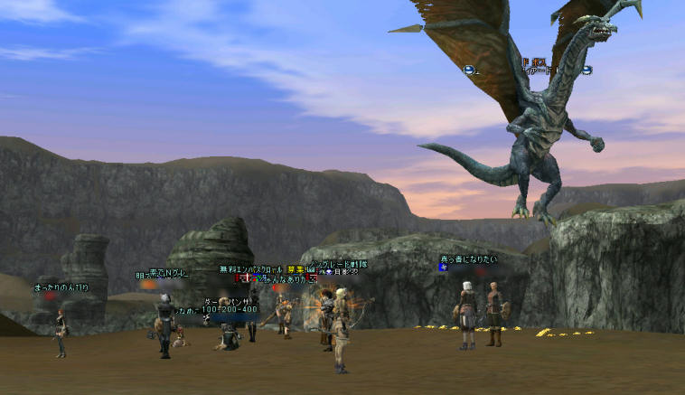 2006/11/23(木)16:00~ 18:00位に終了の予定…らしい ザケン討伐と微妙にかぶる時間帯… 40分経過… 果たしてザケンの影響だろうか? 人が集まらない… まあ、じっとしているのも勿体無いよな… 主催には散歩と言って、ひとり村の外れに移動… いつもはなかなかお目にかかれない、キャット団がいた。 ================================================================== キャット団…はぐれ猫の成れの果て。 ウィザードは、猫を召還できる(ここでは召還者と呼ぼう)。 しかし、年を重ねるほど召還猫は呼ばなくなっているらしい…。 召還猫の「キャット ザ キャット」は、年を取らず、召還者との年はどんどん離れていく。 召還者が若き頃は、共に戦い、苦楽を共にしてきたパートナー。 本来なら、召還者に大切にされるべき猫だが、年の差と共に必要とされなくなるらしい…。 乳離れに近いものがあるのだろう…。 召還者は自立し、猫は呼ばれなくなる…。 いつしか、年の差は開き、召還者の役に立てない苦しみから家出する猫がいるらしい…。 そして、家出の時に召還者が貯め込んでいる資産を、「餞別」とか「給料」とか「手当て」とか「退職金」とか色々呼び方はあるが、黙って貰って行くようだ…。 その噂を聞いた同じくらいの年の旅人(レイドボス討伐隊とも言う)達が、よく猫の持ち出した資産目当てに戦いを挑むらしい。 猫は寂しさを紛わす為に徒党を組み、今日もギランの外れで、過ぎし日に思いを馳せている。 ================================================================== ああ、ファンタジーだなぁ…(妄想) と言うのは置いといて、 「レベルの離れているレイドを攻撃した場合、どうなるか?」 (できれば、狩れるといいなぁ・・・) と言う事で、実験! きた~><b レイドの呪いにかかって見た。 3回ほど試した。 3回ともかかったw しかし、向こうから襲ってくる事が無い…。 レイド ボス「キャット団リーダー」(39) ターゲットは、しっかり俺に向いている。移動するたびに猫の恨めしい目線が追いかけてくる。 興味深いデータではある。 見方を変えれば、呪われるだけで、生命の危険は「無い」のだ。 ストップウォッチで計測した。 2分で呪いは解ける。 この前覚えたPTモンスター用の「チャーム引き」を試してみよう。 親、子供ともにかからない。 チャームは使えないようだ。 さて、レイド討伐に戻ろう。 PT編成は、近接戦闘(タンカー含む)班と遠距離戦闘班。 俺が遠距離戦闘班のPTLに任命された。 17:40頃、移動開始 GKを使わずに現地まで走りとの事に。 ただ、当日は接続状態も「混雑」になっていて、実際ゲーム内でもラグが時々起こる。 走る速度は種族により多少違う為、長距離を走るとなると、走行ラインが長くなる。 ラグって落ちる人もいた。 指揮チャ(指揮官チャット)が無いので、先頭走ってるメンバーとの連絡が不便。 先頭走ってるメンバー、すでに見えないしw 「みんな、待ってくれ~><;」(心の叫び) ススメさんは友人登録しているので友人チャットを使う事にした。 1対1の指揮ならこれで十分代用が効く。 参加者が、置き去りにされないよう、最後尾を俺が行く事にする。 現地には、巨大な地上絵「ノングレ」の文字がw レイドボス「キング ギドラ」(違 と言うのは冗談だが、こうして見ると、どこぞの特撮映画のスナップ写真の様では無いかw 撮影現場風なのが、個人的にちょっと嬉しい><b レイドボス「エンシェント ウィアード ドレイク」(65) まあ、この後二手に分かれて双方から攻撃したのだが、この人数だ。 結果はわかるだろう…火力が圧倒的に足りない。 それでもHPラインホンのちょっと削る事に成功した(目測で1mmくらいw) この後、ほとんど壊滅状態になる。 時間も押してる。 ちなみにこの日のザケンは延期になったらしい…。 今度はレベルを下げてPTのレイドモンスターをw 19:00ちょっと前から準備開始。 ターゲットは、レイドボス「ブラック リリー」 まあ、火力が足りないのは一緒^^; なので、結果も一緒^^; TLは俺がやった。 ブラック リリーのガーディアンナイトを最初にタゲった。 しかし、そのタゲがほかの子供に移る事は無かった。 特筆すべきはガーディアンナイトのHPを、火力が無いと言いつつも半分削った事だろうか。 火力不足は致命的だ。 せめて、現状の倍の人数がいれば・…と不足を嘆いても仕方が無い。 次回は、もっと大勢の人が参加してくれる事を願う。 みんな、そろそろ夕飯の時間…ぽつりぽつりと帰る人が出始める。 そんな「そろそろ帰ろうか」と言う段になって、 「リリーを殴って逃げ切れるだろうか?」 ふと、そんな悪魔の囁きが頭をよぎるw やっぱり、ただ死んで帰るのも面白くないなぁ… やるしかあるまい… で、結果はこうだw 想定内と言えば想定内なんだが… おい、デュラハン、お前までついて来いとは一言も言ってないぞw (デュラハンは計算外だったなw T-T;) 当たり前の事だが、瞬間POTがあれば、そこそこ粘れる。 残ったメンバーで恒例のノングレ帰還。 ススメさん、お疲れ