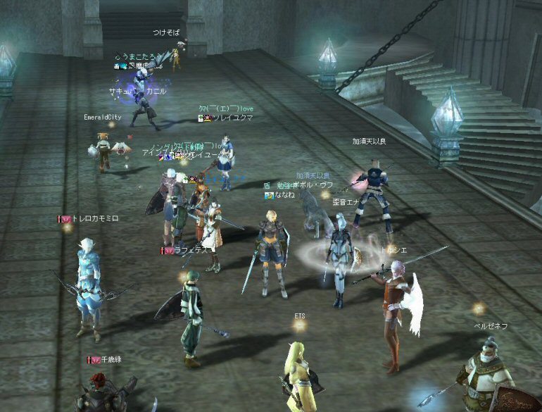 【雑談】 動画作成に協力してくださる方募集(再掲示) 【抜粋】 ほとんどの方は始めまして。某動画サイトでLineageIIの紹介動画を作成している者です。 これまではクエストの紹介を行ってきていましたがせっかくのMMOということでPTプレイを 紹介したいと思っています。 そこで、動画作成に協力していただける方を募集させていただきたく書き込みしました。 集合日時:本日 7月3日(金) 21:00~ (出発21:20くらい) 集合場所:グルーディン村南口(PTMも開く予定です) レベル:20以上(上限は設けませんが40までを推奨) 装備、職業問いません。 狩場は忘れられた神殿を予定しており、即死しない程度ということでLv20~とさせていただいて いますが、多少足りなくてもかまいません。目安と考えてください。 名前は消した状態で録画しますが血盟旗は映りますのでその点ご了承をお願いいたします。 効率は度外視したPTとなる予定ですのでその点もご了承ください。 あまり行くことが無くなった狩場を懐かしみながらワイワイ探検しましょう。 時間は約1.5時間くらいを予定しています。 こう言ったイベントは大事だと思う。 ノングレード戦隊に通じる物がある =w=b レベル20から40位との事だが、レベルは多分関係ないだろ。 俺も60過ぎてるけど、姿だけならノングレードなので、見分けはつかないはずw で、参加してきた。 何かシナリオがあって、それに則ってカット割りして行くのかと思ったら、 そうでもないらしい。 PT組んで、「忘れられた神殿」を探索。途中のモンスター倒して、それを動画に撮るらしい。 2PTだったかな?結構人が集まっていた。 まあ、ノリのいいプレイヤーしか集まらないのがこの手のイベントだ。 面白くない訳が無いw ノングレードで行こう!でも、何度か来ている場所ではある。 適正レベルの時は、アクティブモンスターに泣かされる狩場でもあった。 当時は普通のプレイヤーはもちろん、業者プレイヤーやBOTもいっぱい居た。 モンスターの中で、高価で取引される製作素材がスポイルできる事から、かなりの激戦区だった。 そんな、華やかな時代も過ぎ、今やモンスターしか居ない空間となってしまった。 これだけ凝った作りなのに放置はもったいない。 動画作りのロケーション場所としては、いい場所だと思う。 これでお姫様とか王子様とか、騎士とか庶民の織り成すファンタジーのドラマになると最高なんだけどね・・・俺の趣味的にはw (ま、そのうち気が向いたら創るかもしれない) 例えば・・・ 「忘れられた神殿」 ・・・遠い昔、グルーディオ村周辺で村人を襲い、その魂を喰らって生きている化物が居た。その化物を村人達が討伐しようとしたが、その強さは村人の想像を超えたものだった。村のエルフ巫女が機転を利かせて神殿におびき寄せ、神殿の神の力を持って封印しようとした。 しかし、神の力をもってしても完全な封印は出来なかった。巫女は命と引き換えに結界を張り、怪物は「神殿」の外には出られなくする事には成功した。村人は最小限の犠牲で、その平和を手にしたのだった。だが、怪物は神殿の中を徘徊し、獲物を狙うようになった。そう、神殿の中に入った者は、無事では戻ってこなかった。 そのため、神殿には人が寄り付かなくなり、神殿をモンスターの巣窟にし、村人を守るために犠牲になった巫女の話は風化し、神殿は人々の記憶から徐々に薄れ、昔話の一つとして語られるのみとなったのだ。 その忘れられた「神殿」が、先日発見された。 娯楽も少ない田舎町で、若者が集い冒険者として、この伝説に挑もうとしていたのだった・・・。 そして今、神殿の奥の化物、狭い神殿に封じ込められ、恨みを募らせてきたレイドボス「ティラック」が、部下を引き連れ俺たちの前に立ちふさがったw みたいなノリかなw 俺ならw ちなみに、リネージュ2の神話系には一切興味ない。 神話も含めて歴史は自分達で創るのが MMORGP の醍醐味だろ=w=; さて、トレロカモミロさん主催で行われたこのイベントのラストはレイドボス討伐。 俺からみると真っ青なレイドなので・・・当然「石化レイド討伐」となるのだが、 (そして当然のごとくダブルショットで石化するwwww) その場合って普通ならドロップとか無いはず・・・ 適正レベルのPTと分けて討伐したのが良かったのかもしれない。 ラッキーでした >w<b レイド討伐はともかく、どんな動画になったのだろう?気になる所だ。 トレロカモミロさん、参加させてくれてありがとう^^ 楽しかったデスw 2009/08/10追記: 【ニコニコ動画】いまさらLineageII実況動画~Vol.13~「忘れられた神殿の巻」 ※見る場合には、ニコニコ動画のアカウントが必要かも・・・