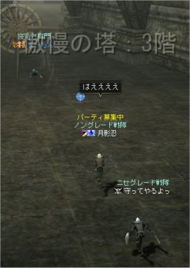 ひっそりと「ノングレードで行こう!雑談部屋」を開いて、有志と遊んだ。 コレについては、また後日に記そう。 2012年5月24日(木)21:00~ 「ノングレードで行こう!」を行う。 イベントの告知をした所で、PTメンバーが集まらないのが、『ノングレードクオリティ』。 もっとも、レベル差無用のノングレード装備のパーティで、旨みなんて無い。 ・防御力・攻撃力とも激減し、殲滅までの時間が大幅にアップ。危険度増大。 ・パーティ内のレベル差でプレイヤー(俺も含むw)に経験値が入らない場合がある。 ・真っ赤な敵モンスターを倒しても経験値は入らない。(今回の仕様変更っぽい) ・死亡した場合は、ほとんどの場合ノーマル復活スクロールか、最寄る為、 経験値を失う。 ・ポットや秘薬など、生存する為に使用する為、コストがかかる。 ・普段使わないような、ノングレードのSSを購入し、それを消費する。 コレだけでも、ノングレード戦隊を知らないプレイヤーは、手を出さないだろう。 経験値を貯めて、早くレベルアップして、装備を調えて、対人戦闘やりたいwww と言う、NCの思惑通りの人たちには、ノングレード戦隊の気質は合わない。 日々、定められたクエストをこなし、 効率よく経験値とゲーム内通貨を貯めたいのであれば、 邪道とも言える「ノングレード戦闘」に興味など持つはずが無い。 きっと俺が向こうの立場なら、 「また、バカな連中が、非効率なイベントして…暇人共め…」とか言いながら、 白い目で見ているだろう。 「対人戦闘を有利に進めるためには、レベルと装備と資本金だwwwww」とか 言ってるかも知れないw(基本、クリックゲーなので、テクニックは二の次w) だが、それでも集まるプレイヤーが居る事実は何を物語るのか!? 少なくとも俺は、効率や装備よりも気の合う友と遊びたいのだ。 リアルではなかなか知り合うチャンスが無い中、 同じ様な価値観だったり、 有志があつまる正当なマイノリティ(少数派)グループプレイだ。 故に、毎度あつまる(新規も含めて)参加者は、個性的だ。 それは単純に『面白いから』に他ならないからだと思う。 NCの開発側が考えた「箱庭ゲーム」で満足するプレイヤーならいい。 俺たちはその上を(ななめ上?)を行くのだw こんな事だって想定内!! (嘘w 弓が居るのを忘れてましたw) ノングレード戦隊のPTで、通常戦闘不能(死亡)状態の場合、 何も準備がなければ最寄る。 もし、ノーマルの復活スクロールを誰か持っていて、復活してくれれば御の字で、 経験値復旧とか無いのが当たり前と言う前提がある。 そして、リザ(復活)や祝福された復活スクロールを使うか否かは義務や強要でなく、 PTに参加したプレイヤー本人の自由意志による行為だ。 だからこそ、ヒーラー職が居てくれて、経験値の復旧までしてもらえると、 本当にありがたいと感じられるんだ。 さて、2階は珍しく、他のPTが使っていた。邪魔にならないよう4階へ向かう。 途中、配置(役割?)の変わったモンスターを叩く。倒せるぞ!! (俺は適正だが、他のメンバーは真っ青なので、俺も含め、誰にも経験値が入らないwww) ススメさんが、約1時間遅れて参加。火力アーップwwww しばし4階の分裂型モンスターと戯れる。 他のメンバーから見たら真っ青かもしれないが、周りを囲まれボックス化すると、 高レベルでもフルボッコで倒される事がある。注意は必要だ。 ・・・がw タゲが俺に移ったwwwwwwwwwwwwwwwwwwwwwwwwwwwwwwwwww と言うわけで、足を使って逃げる! 相手の足が遅いので、しばし、3階の踊り場で鬼ごっこを楽しんだw (最後は倒したけどねw) しばし遊ぶが、ゆっくりしていると最上階に辿り着けないw 5階へ行こう!! つづく