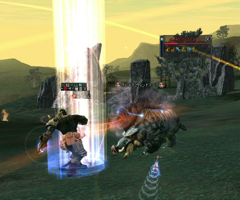 最近にしては、珍しい。 ノングレードで逝ったのは久しぶりだ。 経験値が下がるのは痛いが、「全滅」はしてない。 高レベルのエルダーさんやビショさんが居てくれると、 本当に、ありがたい。 いつもは「最寄る」か「ノーマルスク」なのだ。 シリエルさんのレベル2のリザでもありがたいのに、 それ以上のリザがもらえるとなると、もう何度でも逝け・・・(違 月影忍「そう何度も、逝きたくないわw」 目に付いたモンスターを片っ端から叩いているんだが、 普通に倒せている。 案外、宝箱なんてモンスターが強敵だったりする。 デバフ系はほとんどかからない>w<; ルーツもスリープも効かないから、タゲられるとキツイ。 スースはアクティブモンスターだ。 PTメンバーの一人が、近寄って襲われたw。 グレイズ ウィンドスースに関しては、安定して狩れるモンスターと言えるだろう。 ケトラー オーク ミディアム・・・ こいつも新顔だな・・・ で、 仕掛けてみると、WIZだったw うはw 何だこのダメージはw 2603・・・ほとんでHP飛んでますw 好事魔多し・・・ orz つづく