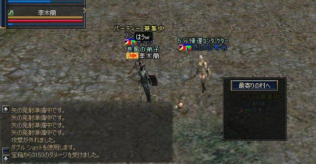 俺は、しばらくノングレで死んで(ゲーム上の行動不能状態)いない。 なので、ちょっと油断もあったと思う。 なめてかかっていた・・・。 なめてかかった代償だな、これは・・・。 久々に逝ったw 傷物になったw 傷を治すために、高額な回復スクロールが一枚消えた。 ノーマルの復活スクも・・・。 だが、これはプロローグでしかなかった・・・。 参加メンバーは4人。 いつものメンバーに新規一名。 新規の人手50序盤なら、傲慢がいいだろう・・・ (うはw 5Fは大丈夫だ。あそこなら3人でも何とかなる。 とりあえず傲慢の塔へ・・・ でも、いつも5Fじゃ、飽きるよなぁ・・・ たまには4Fでw ・・・ ・・・ ・・・ で、 これだ! 4Fは5回とは違い、こちらからは見えない壁の向こうの壁際のモンスターが、こちらを察知して襲ってくる。 アクティブモンスターだから自主的に襲ってくる、それは構わないのだが・・・見えない事。集団で来る事。これが問題。 不用意に壁に近づいて休んでいると、MP回復前に襲われる。 1匹なら、まだ何とかなる。しかし2匹になると火力が足りない。 MPが無ければ全滅コースだ。 3匹リンクした日には、MPの有無関係無しに逃げなければ全滅必須である。 ましてUVカットミルクさんに至っては50前半。 そして、全滅しかけたw ススメさんの足が速いので、下の階で逃げ回ってもらい、タゲを外す。 その後、 蘭さんを最優先でノーマル復活w で、蘭さんの2リザでみんな起こしてもらう・・・。 (祝は持って無いんだ。蘭さんごめんねw) やはり、弓モンスターが痛い。 可能であれば個別に引いて倒したい所だ。 弓なら壁に隠れれば、タゲを外せる。 4F入り口あたりの壁を利用しよう。 どこまで引いてくればいいか、遠距離攻撃の射程から割り出して、 引いてきたモンスターの足止め(ルーツ)ポイントを決めよう・・・って 話しをしているときに、ススメさんモンスター引きに走り出してるしw ・・・で、おまけが・・・ ヒーラーの蘭さんが、一番最初にENDする。 そうなったらもう逃げるしかないw で、俺とススメさんとでモンスター2体を引き、下の階へ。 傲慢の塔では、階と階の間に中通路みたいな階がある。 そこで鬼ごっこ。 モンスターが飽きるまで追いかけっこで生きのびる…。 でも、 こちらに二人いて、モンスター一匹だけなら倒せるのでは…? 一匹は、タゲが外れたようだ…。 ならばw ススメさんの悲鳴を無視して攻撃w 月影忍「あれ?ススメさん、意外と固い…?」 これなら、いける!と攻撃続行w モンスターのHPを削るのが先か、ススメさんのHPが尽きるのが先か… 月影忍「これは、時間との戦いだw」 でも、HP危なくなったらススメさん逃げればいいのに…。 足速いのに…。 ススメの号令「ぎゃー、な、なんで!?」 いや、なんでもなにも、ここまで削ったらやるしかないだろ…? で、倒した…。 後で聞いた話だが、牛乳(体力回復剤の一種)をがぶ飲みしていたらしい。 通りで硬い訳だw じゃなくて俺が誤解していたのかw orz ススメさんと蘭さんから、こってり絞られたのは言うまでもない。 いや、申し訳ない^^; その後、5Fへ移動していつもの傲慢戦闘を繰り広げた。 5Fについては、ほぼ安定した狩りと言えるだろう…。 そして5分期間。 今にして思えば、嵐のような定例会だった・・・。 ノーマルの復活スクロール4枚消えた。 俺の記憶が正しければ、 いままで、こんなに復活スクロールを使った事は無い。 いかに激しい定例会だったか、理解していただけるであろう・・・。 (不謹慎かもしれないが…とても面白かった^^;) 参加メンバーのみなさん、おつかれ^^ノ