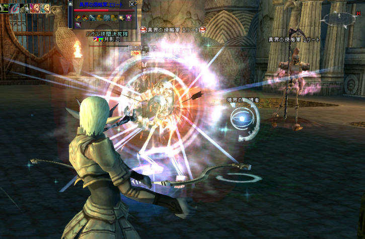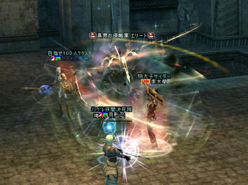 メインのメンバーであるススメ氏が、個人的理由からサークル活動自粛を宣言。 そして…だれも来ない;w; やばい。サークル活動になって、ソロは無いだろと思っていたが… それでもソロの危険があるのかw ^^; まあ、ソロならソロでいいけどね… orz 『ノングレードで逝こう!』は、 もともとは、装備差別が存在するらしいこのゲーム世界の中で、 上等装備だけがチヤホヤされて、それ以外の装備だと遊ぶのにも引け目を感じるような風潮に一石を投じたくて始めたものだ。ゲーム時間の短い人には絶対的に不利な廃人仕様ゲームに、『廃人仕様の遊び方』以外の楽しさを見つけたい…そんな、ささやかな抵抗とも言えるだろう。 本来、ゲームは楽しむもの。 レベルも職も、装備も関係なしで遊べる仲間や環境が欲しい。 全装備が無くなったとしても1ヶ月あればノングレード装備ならば揃えられるだろう。 (実験の日々参照) そうだ!装備で手ごろの手に入るのはノングレードしかない! そんな所からノングレードで逝こう!は始まっている。 今まで、自分達よりレベルの遥か上の赤い敵を討伐して、ノングレード装備での戦闘限界を見極めるようなやり方をしてきた。フルSSでの戦闘。経験値は悪くないのだが、死亡する可能性も高い。スリルを楽しむ方法としては良いと思う。しかし、消費するSS代やら弓矢代、交通費を考えると赤字になってしまう事が多い。 ここらで、少し原点に返ってみよう。 ノングレードでの通常PTで、利益は出るのか? いや、出すにはどうしたらいいのか? と言った視点から、今回はやってみる。 SSを使わない事を前提として、狩り場を選定した。 参加人数3名。 (ソロでなくて良かったT-T;) 緑色~白のモンスターが生息する狩場へ。 リンクも時々発生するのだが、いつもと比べたら段違いに楽だ。 (MPが枯渇するのはそんなに変わらない^^;) 本装備に比べれば、殲滅スピードは遅い。 しかし、ノングレードでも狩れている。 それもNSSを使わずにだ。 消耗コストは弓矢代だけ(時々体力回復POT^^;)。 アデナのドロップもある。 こ、これは黒字だw 俺からすると白や緑だが、他のメンバーからすると、薄青だったりするかもしれない。 変身モンスターも討伐した。 インデックスさんも途中から参加^^ 火力のアップによる殲滅スピードの増加と、スポによる素材が懐に入るようになった^^ 10時半を回った頃、竜児氏が帰還。 PT構成は変わっても、狩りは続けられた。 11:00頃、ミッション終了。 みなさんお疲れ様でした。 終了してみて、利益が20K位出ていた(素材除く)。 火力は必要だが、ノングレードで利益の出るPTは可能だと言えるだろう。