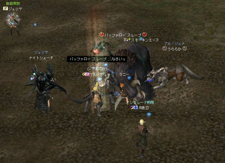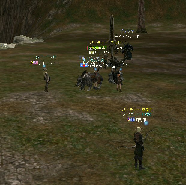 定時に人がいる事が無い。 相変わらず、集まりが・・・・ Wis で課金終了後の休止の問い合わせをくれた人がいた。 まあ、少しでも惜しんでくれる人がいると言うのはうれしい。 少なくとも、今までの活動が無駄ではなかったと言う事なのだから・・・。 さて30分を回ってからしばらくしてから参加者が。 人数少なめなのと、参加レベル帯を考えて、場所は火炎南側橋の下あたりにした。 22時を回って、やっと参加者3名でスタート。 ドワ娘×2+弓(俺)のPT。 あえて言わせてもらおう。 両手に花とw だが、流石にアタッカーばかりのPTだとスリル感が大きい。 特にラヴァオームの火炎弾(魔法攻撃)は、クリティカルが出ると即死だ。 (この時、俺が確か1エンドした気がする・・・) ハーブの落ちる地域以外で、PTプレイは自殺行為に等しいかもしれない。 (それはそれで、はらはらドキドキなのだが・・・) XELLOSS さんが、盾と交代したいと申し出があり交代。 ドワ娘+盾男+弓男のPT。 あえて言わせてもらおう。 ライバル出現!と この後、極悪見習い(ドワ娘)をめぐって激しい争奪戦がはじま・・・らない。 まあ、冗談は置いといて、善玉菌(盾)が入る事でPTの安定感が格段に増した。 タンカーは、もともとHPの高い職なので、一撃死はほとんど無い。 だが、しばらく見ていると・・・善玉菌さん、ハーブを拾わない・・・。 ヒーラーの居ないPTなんだが・・・ 唯一他者にヒール出来るのが盾職パラディンが善玉菌さんw (自分のHPを気にしようよ^^;) お蔭でスリル感は増すんだが・・・ これは増して欲しくないスリル感だな^^; そして、狩りは徐々に過激さを増し、リンクがリンクを呼ぶお祭状態が発生。 盾が死亡すれば、他にタゲが向くのは当たり前だ。 HPの多いとされているドワーフ族にしても、限界がある。 スタンで多少の時間を稼いだところで火力が不足している以上、 複数の敵には効果が無い。 大型犬と弓スキルで何とか切り抜けようとするが、リンクが痛い。 MPがあっという間に枯渇して、まともな攻撃は大型犬しかできない。 程なく、3人とも死亡状態(全滅だ=w=)。 大型犬がまだ生き残っているものの、時間の問題だ。 さくっと最寄る。 生き残ったのはアリサのみ・・・。 まあ、敵を甘く見た報いだろう。 だが、強く叶わない敵なら諦めもつくが、倒せる敵に殺されたとあっては、 腹の虫もおさまらんw リベンジに行こう! と言うわけで、ミッション終了時間が近づいていたが、現地へ舞い戻った。 リンクしていた連中にタゲルと、HPが減っている。 俺たちが善戦していた名残だ。 俺たちが、戦場離脱(最寄りの村へボタンを押下)したために、 目標を見失ったのだろう。 あれほど密集していたモンスター達が、しっかりばらけて居る。 いける! 各個撃破なら、俺たちが勝つ!! という事で、無事リベンジ終了。 俺たちは帰途についた。 ノングレード帰還(5分帰還)発動。 ミッション終了後も、 別れるのが惜しくて、しばし雑談してしまった^^; 参加してくれたみんな、楽しい一時をありがとう。 縁があったらまた遊ぼうw <(@w@) ピッ PR