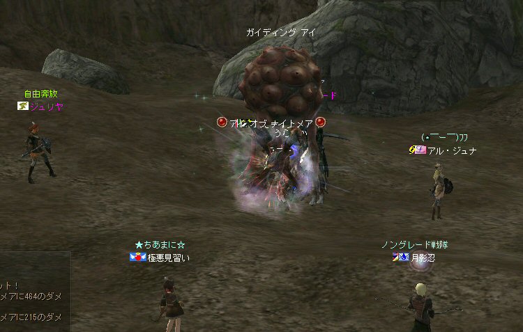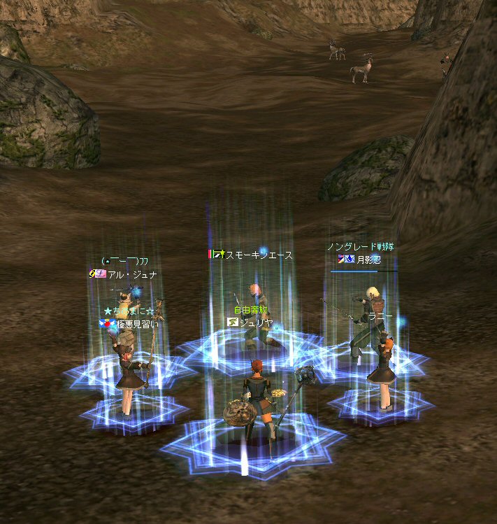 先週は、虐殺~アルゴスの旅。 当初、虐殺で様子を見ることにした。 Nグレ初体験の人も多い。クロノ武器所有者もいる。 (火力的には不安なクロノ武器…素手より攻撃力が落ちるらしい… =w=;) ペットや召喚獣の参戦は念頭に無かったので、 この人数でいけそうな危ない場所として虐殺の大地を選択した。 (全員クロノ武器だったら、それはそれで意味のあるPTだなw) しかし、実際に現地に行って見ると、割と火力がある。 (召還獣も居るしw) 火力的にはもう少し上の狩場でも大丈夫そうだ・・・。 と言う事で陣地変換。 「アルゴス」へ行こう。 途中、ゴダードの国境を守っているNPCを倒すw もちろん、経験値なんて入らない!! ※NPCを倒すのもNグレの楽しみの一つなのだ。 単純に言えば、NPCを使った「鬼ごっこ」の様なものだ。 70オーバーのキャラクターだって参加するノングレ戦隊だ。 これを通常装備で行ったなら、あっという間に倒せてしまうだろう。 だが70過ぎても、N装備だと叩かれると、十分痛いし、NPCを簡単には倒せないw まして、50代あたりだと、瀕死状態になるw それをチームの連携でお互いにフォローしあい、誰も死なせずにNPCを倒すのが醍醐味なのだ。 アルゴス入り口到着。 66でピンクとか赤の狩場になる。 割と安定して狩りが出来た。 まあ、ノングレなので危なさは満点だ^^; 最近、BOTをあまり見かけなくなった。 以前はたくさん居たのに… おかげでモンスターてんこ盛りw BOTはNCJにBANされたんだろうか…? 「ならばよし!」 …なのだが、レベルが上がって上の狩場に移動とか…だと、最悪だね=w=; ミッション終了。 参加してくれた皆さん、ありがと^^ またね^^ノシ