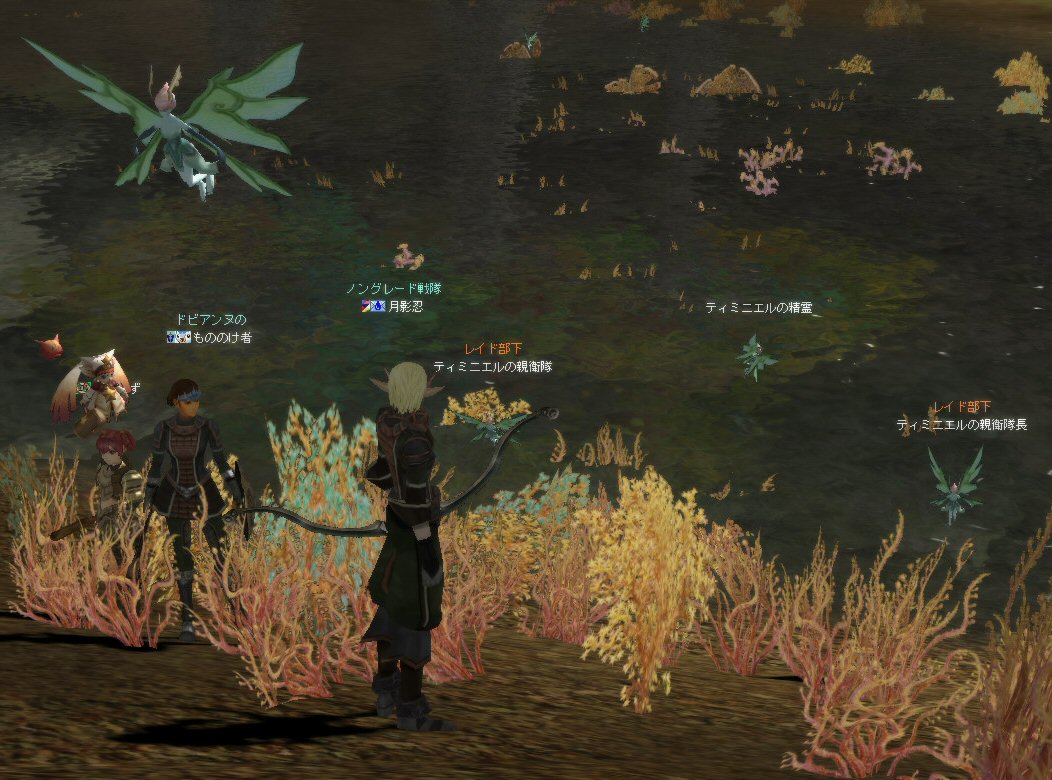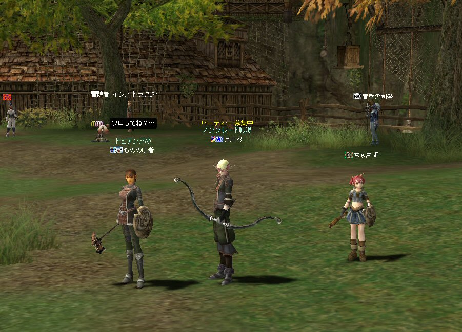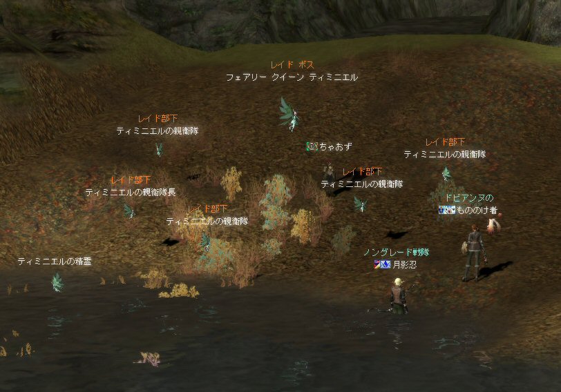 珍しくススメさんが参加。 7月に行われる内藤フットボールの宣伝と、ボール運びの練習を兼ねての参加らしい。 提案で、国立墓地の「タイリム」をコロシアムまで移送したいとの事。 特にやりたいミッションも無かったし、これはこれで面白いだろ。 途中、見かけたレイドボス。 キャラクターのレベルが上がると、これらのレイド討伐も出来なくなる。 レベル上げプレイの功罪だ。 今はまだ、低レベルのサブキャラ育てているプレイヤーも居るからいいが、 それもカンストしたら、全く遊べない場所と化す。 レベル上げしか興味の無いプレイヤーは、何れこの地から去っていく。 俺様最強を誇示したいプレイヤーや、 俺たち最強を誇示したいプレイヤーは、運営会社のいいお客なのだろう。 むしろ、ノングレード戦隊みたいなサークル活動が活発になった方が健全なゲームになるとは思うんだが・・・リアルお金が掛かる世界は、どんな趣向を持つ顧客がどれだけいるかを基準としてゲーム方針を決めていくのだろう・・・。 リネージュ2の「ファンタジー」としての世界観はすでに崩壊している。 もう、修復は無理だろう・・・そんな気がする。 なぜ、ゲームを続けているかって? 繋ぎ止めているのは「『ノングレードで行こう!』に集まる人が好きだから」だけかも知れない・・・。 タイリムを引いてコロシアムへ ほとんど職人芸だよススメさんw シャウトでも何でも、こういった職人っぽい技を持っているプレイヤーを俺は尊敬する。 何かにつけ、キラリと光るものを持っているプレイヤーに出逢えると、 うれしいものだ^^ ま、引いてくるだけの話だから、引いてきたら眠らせたり足止めしたり、 いじめてみたりしかないのだが・・・ 飽きて倒してしまうと次が無い =w=; マーシュドレイクも、レベルが低いモンスターなので大した脅威は感じない。 (だが、油断するとHPをかなり持って行くので注意は必要) 変わった物を、集めているBIGCATさんw せっかくなので、まったりミーティング(雑談)を・・・。 極悪見習いさんもミーティングに参加w 最後は、定番で。 で、ノングレ帰還発動中のシャウトw みんな、参加ありがと^^ さて、別の話し。 グラボを交換してどれくらいの違いがあるのだろうか? ちょっと見てみよう。 確かに、水の表面とか透明度、反射、リアルに表現されている。 グラボ変えた後のアデン城村。背景が少しぼけているのが分かるだろうか? 遠近感が増して、なかなかいい効果が出ている。 これだけ美しいグラフィックなのに、それを最大限に活かす遊び方が無い。 映画とか撮れると、素敵なんだがな・・・。 リネ2のムービー機能は、撮影してもカクカクした動きは当たり前で、編集も出来ない。 また、アップデートの度に以前のデータが使えなくなるゴミ仕様なので使い物にならない。 宝の持ち腐れとはよく言った物だ・・・。