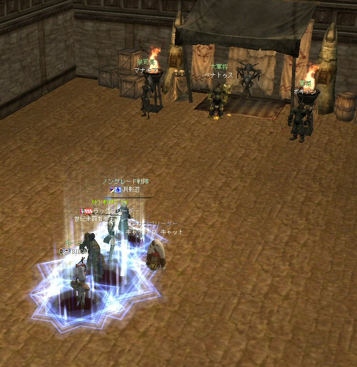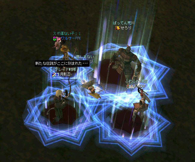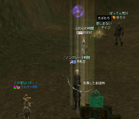 討伐不可と判断した俺達ノングレード戦隊は、近間で危ないDVCへ行く事にする。 いつもならGKを使って~となる所を、あえてDVから徒歩での移動。 入り口で黙々と狩りをしているのはBOTか!? まあ、それにしても寂れた風景になったものだ。 他のプレイヤーが見当たらない。 みんな高レベルの狩場へさっさと向かってしまうのだろう。 レベルさえ上がれば、リネージュ2のクエストの数々(ゴミなクエストも多いが =w=;)などお構いなしなのかな? 以前、ここでプレイした時代は、人がいっぱいいて、それなりにハラハラドキドキもあった。 リネージュ2と言う MMORPG に何を求めているのか? ゲーム内金持ちになれたら、それはそれでいいなと思うし、 レベルが上がって他の狩場で遊べるようになるのも悪くない。 でも、作業なゲームはしたくない=w=; ただ、レベル上げブームに乗っかって、さっさと高レベルな狩場で遊ぶのもいいが、 自分達が何を求めているのかを見失っているとしたら、それは誰かの手のひらで踊らされている道化の様な物かも知れない(飽きればサクッと引退だろうし・・・)。 基本 「ハラハラドキドキ(スリル)」 「攻略方法の試行錯誤」 「気の合う仲間」 「達成感」 新鮮さは、時と共に劣化していくが、人は忘れる動物でもある。 温故知新。すでに過ぎ去った日を懐かしむだけじゃなく、その時代から学ぶ事もある。 DVCへの道すがら、通り過ぎる真っ青なモンスター達。 彼らが赤かったり白かったりした名前の時代、 野良PTでは、危機的状況は生まれ、PT内のメンバーで協力し、 危機を退けるスリルや興奮はあった。 それは今の時代にも通じる。 『PTで狩りをする楽しさ』と言う意味では、『そのスリルはレベルは関係しない』と言える。 それに新鮮さと難易度を加えると、やはり新規狩場が人気になるのかもしれない。 すでに報酬の額から違うからな。同じ時間プレイしても・・・。 いつまでも低レベル=超ビンボー ・・・ ・・・・・・ ・・・・・・・・・ ・・・・・・俺かw 思い起こせば、ノングレード装備で逝こう!でここを通過した時は、ドキドキ物だったな ^-^; 真っ青なモンスターにだって倒される事がある。 ノングレード装備の火力がどれくらいのものか、その実体を試したプレイヤーはそうはいない。 効率重視のプレイヤーがやるプレイスタイルではありえないからね ^^; 奥へ進む。 でも、本当にプレイヤーが少ない・・・。 いっぱい人がいた頃が懐かしい・・・つwT; で、DVC内部へ突入。 今回は生き延びる事ができるだろうか? 一応、死ぬつもりは無いので最悪の事態が発生しそうなときは、リコをお願いした。 (まあ、タイミングが難しいんだけどね・・・) そしてどこにでも居る名物。 名前からするにアカウント販売が目的なのだろう。多分。 ネーミングのセンスが上がっている・・・。 orz 結構、奥まで来たが、樹来さんがタイムアップ;w; 血盟員を持つ盟主は忙しいのだ。 一人減ると、かなり戦力ダウンになる^^; 運よく他のPTが奥で狩りをしていた。 少しずつへっていくモンスター・・・奥へ進むなら今しかないかも知れない。 で、みんな走った。前回全滅した地点へ向かう。 フルPTでもきつい場所だ・・・いや、ここは通常装備でもきつい場所だな =w=; すでに、4人になった時点で無謀とも言えるPTなのかも知れない。 だが「全滅戦隊」などと言う汚名は断る!! 俺たちは生き残る。 それが俺たち『ノングレード戦隊』だw (って言うと、特撮TVヒーローっぽくないか?) そして始まる戦闘w 当初は一匹ずつ倒して、引いて倒して数を減らして行ったんだが、 時としてリンクする=w=; ヒーラーが他のモンスターを眠らせて時間を稼いでいるうちに、可及的速やかにモンスターを殲滅するwww 倒せる。倒せるぞモンスターをw だがw MPも減って行くw これは敵対するモンスターを倒すのに必要なMP量が圧倒的に少ない。 かなりみんなぎりぎりまで戦っているw だが、そろそろ限界だろう・・・そろそろリコを・・・ リ、リコ持ちが一番最初に逝ってどうする@w@; これは多分、超緊急事態だな =w= ま、いつもの事には違いないが、このままだと全滅コース確定になる。 まずは復活だ。と言ってもノーマルスクしかもっていないw。 復活スクロールの詠唱時間が長いんだが、みんなが善戦してくれているお蔭でこちらにタゲは来ていない。ここで、モンスターに殴られ、復活がキャンセルになったら絶望的状況となる。 詠唱している時間は何も出来ない・・・みんな、持ち堪えてくれwwww つ、難しい呪文で、舌を噛む。活舌練習が必要かもしれんw 俺はエルフの弓職、詠唱職じゃないから仕方ないだろう。 (詠唱時間が長くなる訳だ) 減っていくHP。 ・・・ 眠りから醒めるモンスター。 ・・・・・・ 厳しい戦闘。 ・・・・・・・・・ がんばれみんなw ・・・・・・・・・・・・ と、復活成功wwww ・・・・・・・・・・・・・・・ リコをwwwwwwwww ・・・・・・・・・・・・・・・・・・ うはw、世紀未覇者拳王さんの
