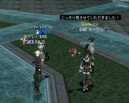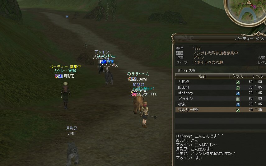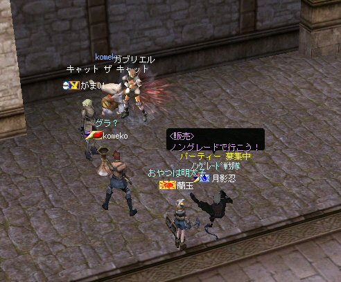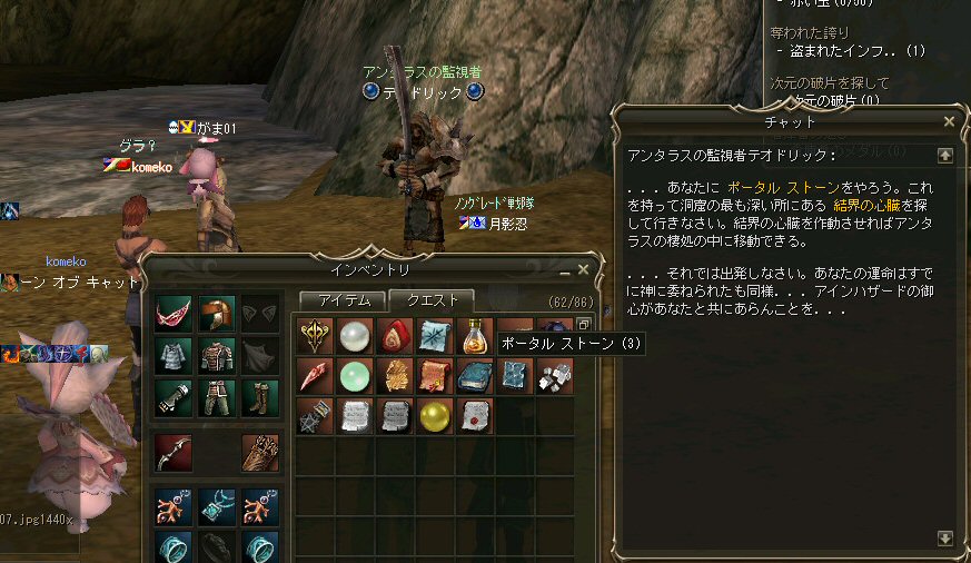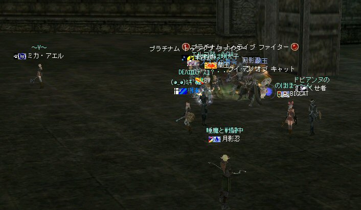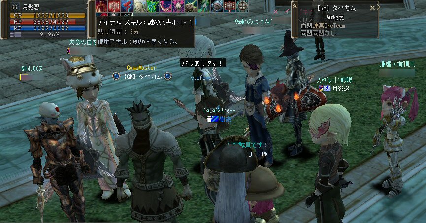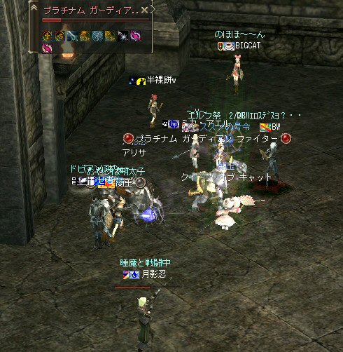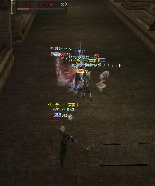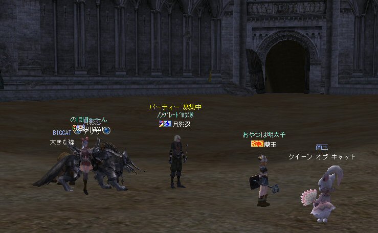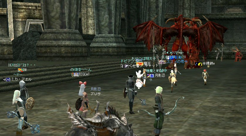 21時近くでインしようとしたら、分割アップデートが始まり、 結局ぎりぎりになってしまった。 告知は21:30集合と言う事で書き込みをしているから、 俺が遅れたら洒落にならんw で、アンタラスクエを受ける。 集まったメンバーにも寄るが、あまり開始が遅いと12:00を回ってしまう。 「日時:本日21:30~23:30位の予定」としているので、 出来るなら23:30頃には終了させたい。 進行が遅れるようなら前半で終了と言う事もありえるかな。 理想を言えば、21:30の状態で参加メンバーが集まり、すぐにスタートできれば、 恐らくは、余裕をもって終了できるはず。 たしか、1時間30分~2時間くらいのクエストだ。 だが、21:30分で人が集まっている事など少ない・・・ ここが、ローカルなイベント故の悲しさだろうか・・・ 人数が少なければ、クエストの進行も困難さが伴うだろう・・・ 「最悪一人か・・・」と思うのは、いつもの事ではある。 (もちろん一人でだってやるさ。自分で蒔いた種だし) でも、不思議な事に、少人数でも参加してくれる人がいる。 本当に、いつもありがたいと思う。 もし、誰一人、集まらなかったとしたら、このイベントと言うか、 サークル活動の意味が無くなったと言う事なのだろう。 その時は・・・まあ、そのとき考えるか。(覚悟はしてるがw) 年度末だし、正式隊員の中でも忙しい人もいるだろう・・・。 だが、あまりのんびりも出来ない。 参加者全員が、常時接続で、時間に余裕のある人とは限らないからだ。 以前やった「ちょこっと課金」やった人ならわかるはず。 1時間100カイモ(100円)。それはリアルで消費される現金だ。 一応、ギリギリの22:00頃まで待って出発する事にする。 シルレンの俺以下、 タイタン デュエリスト ウォーロック アタッカーばかりでヒーラーが居ないPTw だが、工夫次第で何とかなるだろ。 ある意味、そう言う所が「ノングレードで行こう!」の魅力のひとつだと思う。 参加者にNPCのガブリエルからクエを受けるよう促し、 22時を回った所でクエスト開始だ。 クエスト進行で足並みがばらつくのを避けるため、PTMは閉じた。 大まかな予定は、 ・アデンのシーレンにてサチコから出現するクエストモンスター「供物の霊魂」を倒す。 ・忘却の平原に行きマーシュ ストーカーとマーシュ ドレイクを倒す。 ・巨人たちの洞窟に行きクランロットとハムルートを倒す。 ・猟師村から鏡の森へ移動し、ハリツ リザードマン オーバーロードか シャーマンから出現するクエストモンスター「ハリツ リザードマン狂信者」を倒す。 クエストアイテムを入手後、 猟師村のNPC>象牙の塔のNPC>アデンのNPC(2箇所)と話をして、 アイテム「守護者の証」を手に入れてギランのガブリエルに話をする所までが前半だ。 順調にクエストをこなしていく中、 猟師村あたりに差し掛かった22時30分頃だったと思うが、2名参加者が増える。 隊員のミカ・アエルさん(魔法使い)とBIGCATさん(ヒーラー)だ。 時間的に後戻りはできないので、このままクエなしで行くしかないかなと思っていたら、 蘭玉(ウォーロック)さんが、サポートに向かうと言う。 こちらは、先に進んでと言う話なので、先行部隊としてクエを進行する事にする。 (正式隊員のススメさんも20分頃にINしていた事を、SS整理してて気がついた;; WISくれればよかったのにww) 火力的には多少不安はあるものの、 魔法職とヒーラーと召還職の3人居れば、クエストは進行できるだろう。 後半の進行は、 ・オーレンの胞子の海近くのアビスジェルと取り巻きを倒してアイテムを取得、 鍛冶屋に話をしてアイテム「守護者の証」を手に入れる。 ・グルーディン村の風の丘近くのアビスジェルと取り巻きを倒してアイテムを取得、 倉庫番長に話をしてアイテム「守護者の証」を手に入れる。 ・ギランのガブリエルに話す。 ・DV入り口のNPCに話す。 ・DVCでケイブ キーパーかケイブ メイドンを倒し、最後のアビスジェルを出現させる。 アビスジェルを攻撃し、倒すんだが、取り巻きが出現して、結構面倒w 火力が弱いと、倒す事が出来無い事がある(数年前のブログに記述したはずw)。 ・入手したアイテム「ジュエルの破片」をDVC入り口の監視者NPCに渡すと、 「ポータルストーン」が入手できる。 23時32分頃、無事、先行組のミッション終了。 予定していた時間だ。 何も無ければ、20分ほどで後発部隊も到着するだろう。 最後のアビスジェルは手強いので、サポートは必要だな・・・などと考えつつ、 周辺の薄青いモンスターを倒して待っていた。。。 後発組は、アビスジェル(風の丘)にてクエの進行中・・・。 だが、そこで悲劇は起こった。 ミカ・アエルさんとBIGCATさんが死亡(戦闘不能)状態に@w@; アビスジェル周辺に湧く大量の取り巻きに絡まれたらしいw 救援にいかねばw (実は手持ちアデナが50Kを切っているんだが;w;) ノーマルスクでPTの態勢を立て直し、クエストのリトライ。 後発組はアイテムを入手した。 もう、12:00近い。 仕事を持ってる人は、そろそ