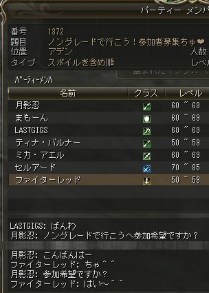 ★★★★★ 木曜日、ノングレードで行こう!定例会のご案内 ★★★★★ 先週、転職していないヒューマンファイターの方が参加してくれた。 50過ぎのファイター・・・それはそれで凄い事だと思う。 HPが少なめなので死亡(戦闘不能)しやすいのは確かだが=w= 元々2次転職以上としたのは、タダでさえ死亡状態になりやすいサークル活動なので、 他の参加者との条件を合わせ、少しくらい生存確率を上げておくか位の意味合いだった。 まさか40過ぎて転職してないキャラはいないだろう・・・ ・・・と2次転職以上としていたのだが・・・ いや、実際にそんなキャラが存在しているとは思わなかったwwww 面白いので2次転職以上という条件は撤廃しますw (自己責任でご参加をw) 結界目指して何度か全滅していますが、 今回は、目標レベルを少し下げ、DVCの橋を目指します。 生きて帰れる保障はありません。 道がよくワカラナイので参加希望で詳しい方、サポートよろしくw (詳しい方がいない場合・・・あははははははw) 以上! 公式サーバ別イベント掲示板
