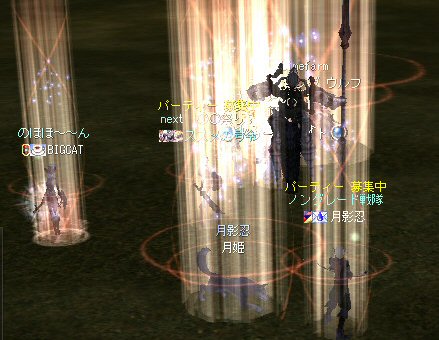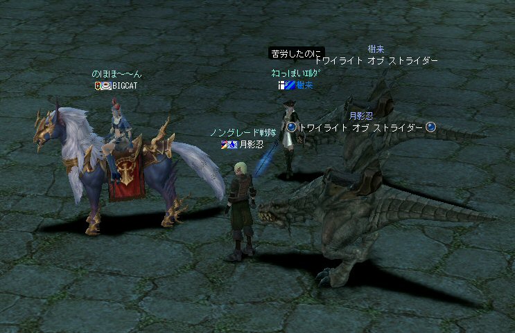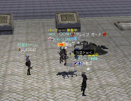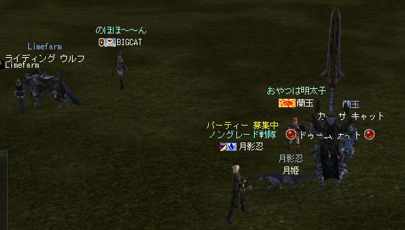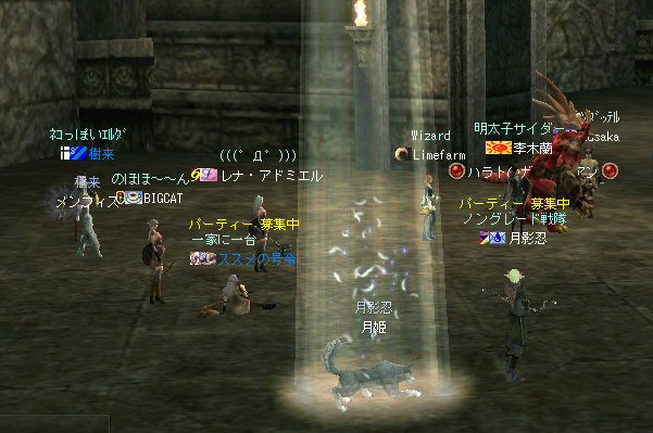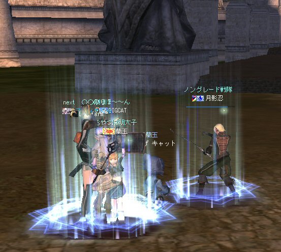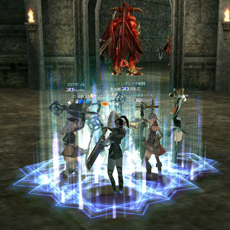 冒頭で、ファティルさんが久しぶりに参加してくれた。 でも夜中に仕事で、仮眠しなけりゃいけないらしい。 せっかく逢えたのにwwwww 早速ミッション開始だw 「ファティルさんと共にノングレ帰還せよ!」 という事で、集まったメンバーで早速ノングレ帰還をw 早くも本日のミッション終了だw いや~いい汗かいた。。。 (違 PTルームでリアル睡眠中になったファティルさんをそのままに 集まったメンバーで久しぶりに傲慢の塔へ向かった… しばらく見ないうちに傲慢の塔1Fは、BOTだらけになっていた… 通報しつつBOTの邪魔をして遊んでいたら、BOT護衛兵か!? 2FもBOTだらけw まあ、BOTと遊ぶのが目的じゃないからw 上へ上がろうw ぽつり・・・ぽつりと参加者が増える。 しばし3Fで待機。 上がってくるのを待とう。 で・・・合流。 さあ、5Fで戦闘開始だ。 何匹かモンスターを倒していると、俺の姫がレベルアップ。 16歳・・・結婚しても大丈夫な年齢にw (違 5階も安全な場所ではないのだが・・・さすがに55の時とは違う。 攻撃は当たるし、ある程度余裕もある。 そして適正狩場・・・。 若いころに来た頃、ここは真っ赤な名前の場所だった・・・ 黄色だと、イマイチ感は否めない。 盾職の弟だってBMWと共に真っ赤な敵に立ち向かっているのに・・・ もう少しレベルを上げた狩場の方がよさそうだ・・・ だが、俺の中では狩りが目的じゃないからな・・・ やっぱ、友達だろうなぁ・・・。そう、ここで知り合った仲間。 ペット育成も楽しいといえば楽しいが、とかく作業になりがちだ。 そこにドラマはなかなか生まれない。 やっぱ、シチュエーションって大事だと思う。 リネージュ2のゲームの仕様に振り回されて、妄想を忘れ、レベル上げや戦闘にうつつをぬかす様じゃ、真のMMORPGERでは無いだろう? (今創った!MMORPGER:MMORPGをする人の事。新しいノングレ戦隊用語だ) 「他の人になってみたい」「リアルとは違った別の世界で生きてみたい」 いわゆる「ファンタジーの世界」(悪く言えば妄想世界とかになるのだろうか?) 今時、そんな人は少ないのかも知れないな・・・ リアル自分を投影しているだけのキャラクターじゃ、面白さも半減だと俺は思ってる。 映画やドラマの俳優の様な、別人格を演じると言う、恐らくは高度なプレイ。 それがMMORPGの醍醐味だとも思う。 (うまく出来ているとか出来ていないは問題ではない。自分が納得できればよしw) だからこそ、新しいドラマだって生まれる。 リアル男だってリアル女だって関係ない。 キャラクター間で話をしていて、ウマが合って、友達になって・・・ ひょっとしたら、リアルはどうしようもない人間なのかもしてないが、 でも仮想空間で、心が揺れる。 リアルでなかなか異性と出会う機会がなくても、 この仮想世界の中には、たくさんの人と出会えるチャンスがある。 恋物語だってできる。 そう、時には騎士もやってみたいじゃないかw たまにはお姫様ってのもやってみたいw (色恋沙汰のどろどろは勘弁だがな =w=;) ふしぎな事に、役柄を変える(視点を変える)と別の感情とかがわいてくる。 自分が言っていた台詞も、役が変わって他の人間に言われると ムカついたり・・・ 恥ずかしかったり・・・ みんなも試してみるといい。 本当の所で異性の気持ちはわからないかも知れないが、 雰囲気は感じ取れる筈だ。 「それは映画やアニメや小説やマンがを見て感動する」と言う受動的な感動世界とは違った、 「自分が脇役や主役をやって物語や感動を創り上げていく」と言う能動的な感動世界なのだと思う。 仕様という言葉に縛られて、創造の翼を見失ったら、自分自身が見えなくなるだろ・・・ だから「ノングレード戦隊」なんだとも言える。 ゲームにはルールがある。 逆にルールが無いゲームは、ゲームとして成り立たない。 自分達から限られた装備に身を包み、そこから自分達の世界を創造する・・・ (ルールを決めて) (プレイする・・・) それが「ノングレード戦隊」なのだと・・・ ・・・うはw 語っちまったw ^ー^; ファティルさんも、目覚めて仕事に出かけた。 俺達も帰ろうか・・・ みんな、お疲れ様^^w ・・・次回は「石化レイド作戦パート3」・・・がやってみたい=w=