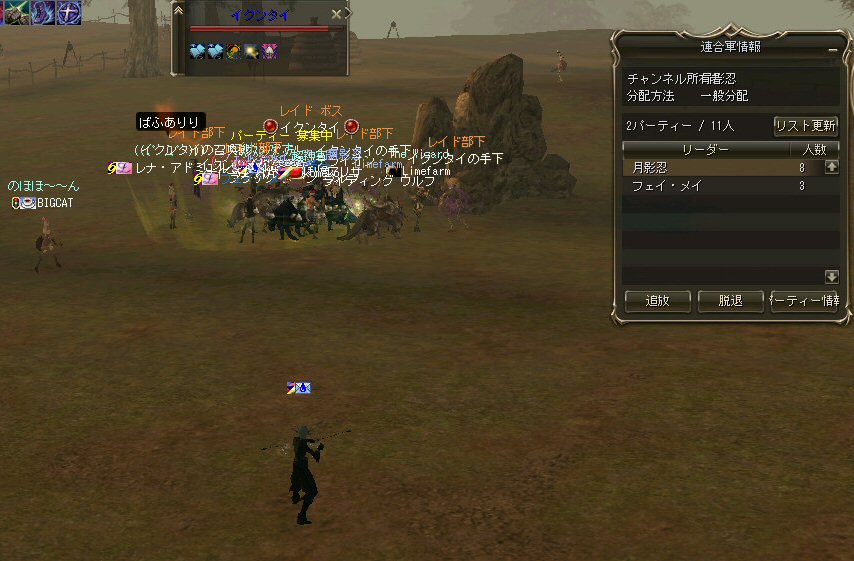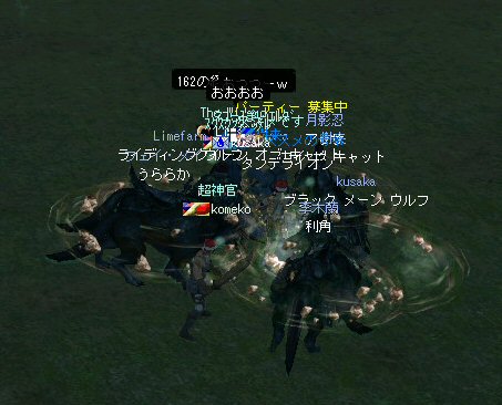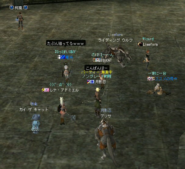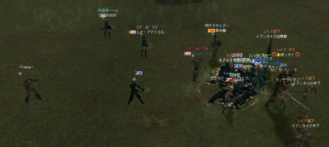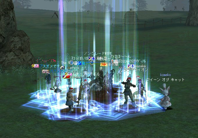 久々の石化レイド討伐作戦実施。 21:00頃INして、今回討伐するレイドを探索。 一度やったレイドはパスしたいと思い、イクンタイの生存を確認した物のパス。 あっという間に30分経ったが、定時に集まったのは3人ほどだったか・・・ 一緒にレイド探索の旅に(個別にいろいろまわる) 話せる島にも一体いたと連絡が。レベルは低いらしいが一応候補。 で、イクンタイよりひとつ上のレイド発見! 早速攻撃を開始しつつ、メンバーが集まるのを待つ。 一人、ふたり、と集まり、BMWまで参加させて討伐しようとしているんだが・・・ 硬いw 途中、レイド討伐レベル適正と思われる人が見学に来た。 見学者「どれくらいで討伐できるの?」 俺「2時間・・・くらい?」 見学者「@@」 前回のイクンタイではそれくらいかかった。ペットもそんなにいなかったしな。 それくらいだろうとふんだんだが・・・。 火力が足りない。 2時間でも困難ぽい。 見学者は「がんばって^^;」と声援を残し、我々の目の前から姿を消した。 まあ、一生懸命やってるが・・・、削ったHPが石化しているうちに回復してしまう。 ノングレード装備だからこそ身に染みてわかる方程式 モンスターのHP回復量>モンスターに与えるダメージ(モンスターから削れるHP) では、絶対に討伐できない事を・・・ orz 22:00をまわってこの状態では、ノングレイベントがいつ終るかわからない・・・ みんなと相談して見るが、やはり討伐出来そうもない。 仕方が無い、ターゲット変更だ。 話せる島へ(泳ぎでw) 人数が微妙に増え、9人では収まらなくなった。 2PTの連合だw 俺的には初めての連合チャットだ@@w 体制は整った。いつでも討伐に行けるぜ!! まってろ鼠!!! ・・・しかし、だれかに食われたらしい。 再度確認しに行ったメンバーから、いないと報告が・・・。 ち、仕様が無い。 また、イクンタイにいくんかいwww で、現地到着。 連合チャットに浮かれつつも、チャットの頭に「``」入力が面倒な俺。 実の所、何も考えてないので、指揮るの面倒なんだが・・・。 ススメさんが「俺がやろうか?」と提案。 (キャラは女の子なんだから、女の子らしい言葉遣いにしなさいwww) ちょうどいいや、ススメさんに指揮チャをパスw ススメの号令「隊長のイベントを乗っ取った~>w<ノ」 (マテ 元々、ノングレ正式メンバー全員が仕切る権限は持っていると認識している。 だいたい、そう言うサークル活動だろう? まして、君は第一回からのノングレード正式隊員だろうがw (;´Д`) 日が暮れ、夕闇が迫る中、討伐開始。 (実際、ススメさんの方が仕切りはうまかったが・・・) 第一回のレイド討伐作戦から随分経っている。 俺のレベルも当時より随分上がったし、姉貴からの借り物のライディングウルフの火力も高い。 レイドのHPは思ったより早く削れた。 討伐完了。 ほんのちょっと経験値とSPが入る。 しかし、バイタリティ回復は無いし、ドロップも当然なしだ。 不思議な事だけど、ほんのちょっと経験値が入っただけでもうれしいと感じる。 ソロでモンスター狩れば、同じ時間を費やして、はるかに多くの経験値やSPを稼げるだろう。 効率的に言えばそうした方が、レベルは早く上がるし、ゲーム内通貨も稼げる。 でも重みが違うんだよね。 この経験値とSPは、みんなで勝ち得たものだから・・・ 損得勘定で言ったら、割に合わないサークル活動だ。 それでも、みんな集まってくれた。 それだけでも不思議なサークル活動だと思う。 だからこそ、面白いとも思う。 (面白いメンバーしか集まらんしなw) もし、「ノングレードで行こう!」に人が集まらなくなったら、 リネージュ2と言うゲームの終焉かもしれない・・・ (と言うか、俺的には引退決定だ =w=;) 参加してくれたみんな、ありがとう>w<ノ ノングレ終了後・・・・馬だ@@