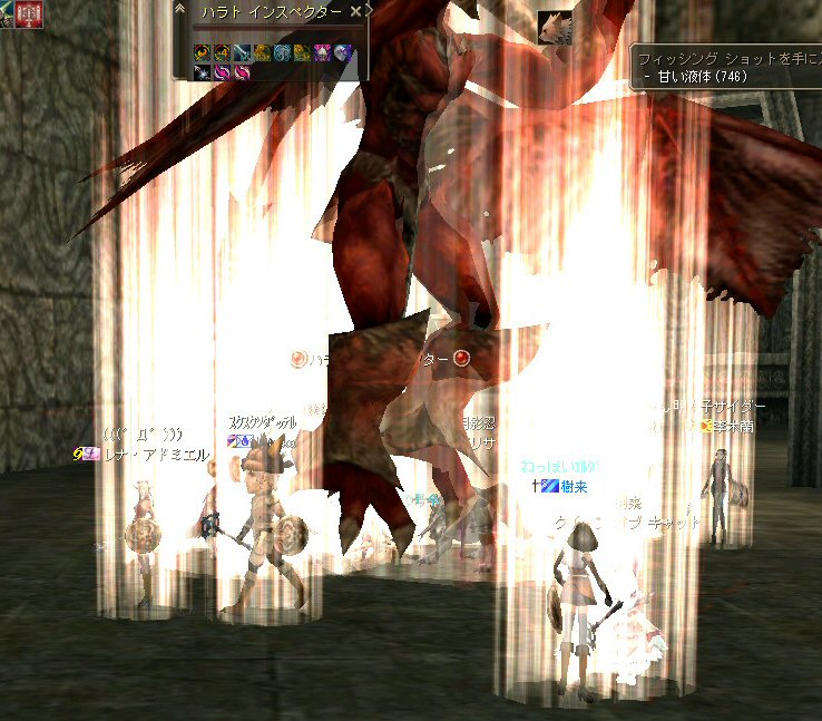 55の時は適正レベルだったが、いまや俺も65 ここのモンスターは真っ青だ。 ノングレード装備でソロでも狩れない狩場ではない。 つまり、狩りを楽しもうと言うわけではないのだ。 ミッションは姫の命を守ることだ。 ・・・ いきなり魂を抜かれてしまったw 出鼻を挫かれてしまったが、気を取り直そう。 Lv.15の生まれたての姫にとって、ここは超真っ赤(黒に近い)な危険地帯なのだ。 それを守るのが騎士の称号を持つ我々なのだ。 だが、数分と経たないうちに・・・ なかなか困難を極める@w@ 当初、3人で盾職なしだったので、アクティブモンスターに狙われたらアウトだったが、 ススメさんが参加してモンスターを引いてくれるおかげで、 だいぶ安定して姫を守れるようになった。 PT参加メンバーも増え、 安定して守れるようになったのなら次のステップに進まねばなるまいw 徒歩でシーレンへ(隣だけどw) ここは、範囲スタンがあるんだよねぇ・・・ まあ、予想通り、コロッと・・・ 結局、全工程を通してノーマル復活スクを4枚消費し、 3回リザを受ける結果となってしまった。 それでも・・・ 姫は着々と育っていたのだ@w@ 今回、攻撃ではなく防衛に主眼を置いた遊び方を行って見たのだが、 なかなか難しい。 当初、お姫様役募集だったが、誰も希望者がいなかった。 いたらもっと危険な狩場に行っていただろうが、お姫様役の死亡の可能性もあり、 なかなかやってくれる人がいないのかも知れない。 姉貴に頼んでもいいが、俺がこの世界に出られなくなるし・・・。 (注:人柄はキャラごとに変わりますが、プレイヤーは一人だからねw) また、先制攻撃でない分、受動的な戦いになるため、全周警戒をしなければならない。 (そこが面白いと思うんだが) 気を抜くと、そばにわいたモンスターに魂を持っていかれる。 ただ、いつ果てるとも無く続けると、精神的にくたびれる。 ここは、時間制限も含めた内容のミッションにした方が、より集中と緊迫感がでて良いかも知れない。 メンバー間の反応も今ひとつだったような感じである。 課題の残る遊び方ではあるが、 俺的にはひとつの方向性としてこれもアリだと思っている。 どうしたらもっと面白くなるんだろうねェ・・・ などと考え、ある程度実現できるのがリネージュ2の魅力のひとつだ。 そういう意味では自由度の高いMMORPGとして理想に近いと思う。 だからと言って、リネ2に不満が無いかといえば、不満だらけではある。 それでも、他のゲームだと目的と仕様がほとんど決まっていて、 なかなか自分達の遊びが出来ないからね。 (グラフィックもリアルじゃなくて、ベタなアニメ調が主流だしね =w=) まあ、なんにしても俺のワガママ企画だ^^; みんな、付き合ってくれてありがとう^ー^ノ ではまたw |