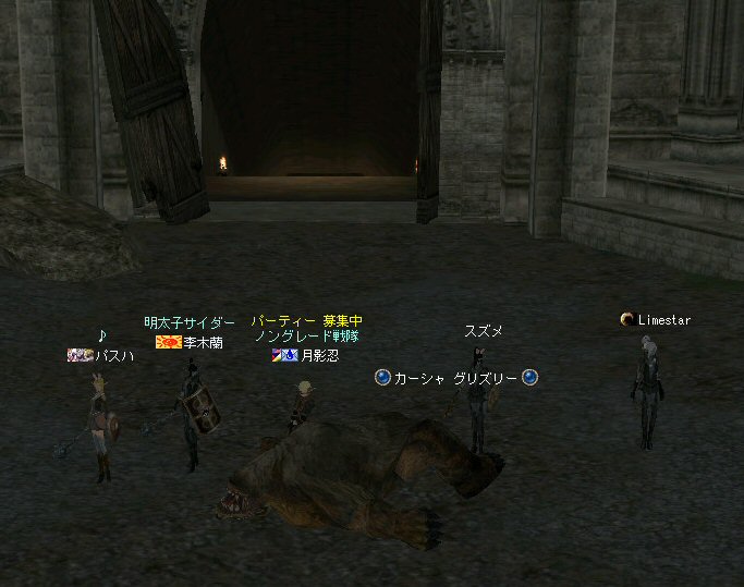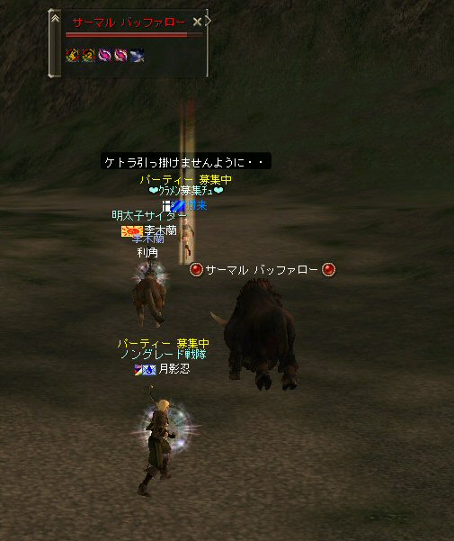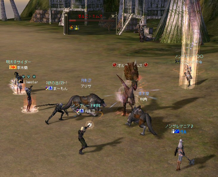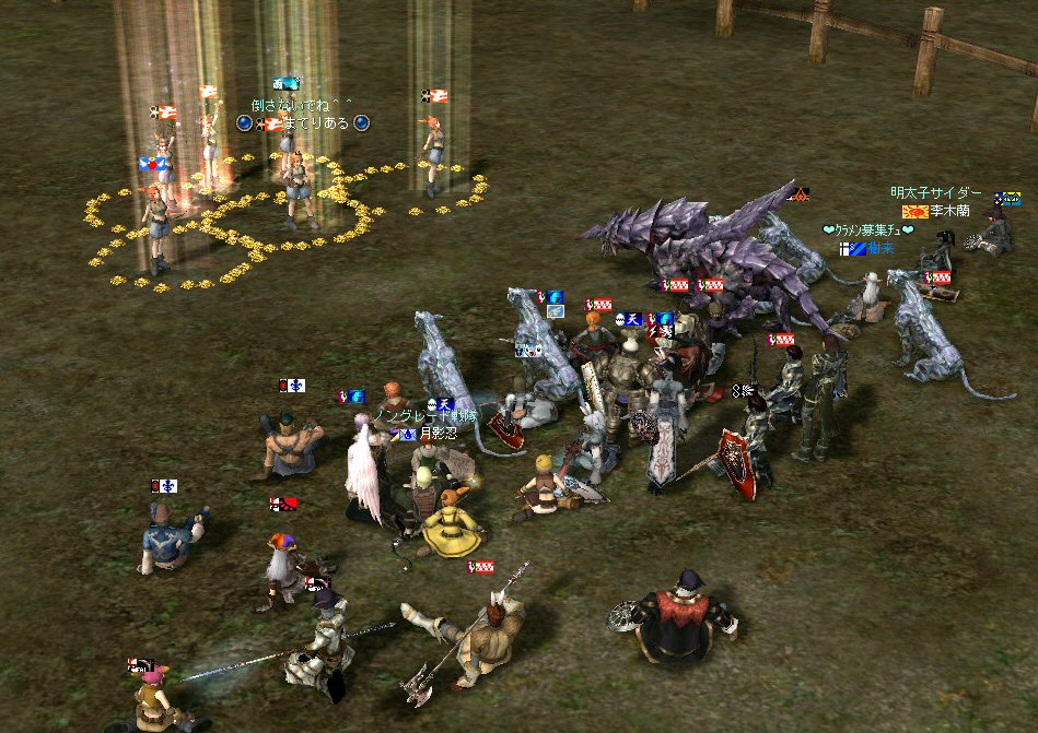 「ノングレードで行こう!」番外編の話だ。 その日の同時刻、アンタラス討伐があったのだが、 俺達は、ネバリンピックに参加してみた。 姉貴はアンタラス討伐に行きたかったようだが、こちらの方が先約だ。 告知だって、ネバリンピックの方が早かった。 納豆血盟のネバリンピックは気になるイベントでもあったし、 今回のアンタラスには縁が無かったということになるかな・・・。 さて、 ネバリンピックで何を引いていくか・・・だが、 結局、温泉の牛で行く事にした。 温泉のイエティって線もあるにはあったんだが・・・俺の趣味じゃなかっただけw 今回の誘導経路は、傲慢の塔経由。 猟師経由は、ちょっとコースが曲がりくねって複雑だ。 ネバリンピックに出場すると言う目的の為には、シンプルなコースの方が良いだろう。 通常のノングレなら困難な猟師経由でも全然問題ないんだがw ・・・・ それにしても・・・ タゲが取れない。 本日は、ススメさんは参加しないと言っていた。 なので、ススメさんのヘイトは無い。 にもかかわらず、アタッカーの俺のヘイト値は低いらしい。 本日の役割。 引き(主役):李木蘭、樹来 FAと雑魚処理:月影忍 こんな感じ。 蘭さんがヒールすると、ひょいとタゲが蘭さんに向き、 樹来さんがヒールすると、ひょいとタゲが樹来さんに向く。 そして、FA以降、俺にタゲが来る事は無かった・・・ orz まあ、モンスターが何であれ、やることは一緒なんだが^^; 一路ギランの決闘場へ向かう。 時間的に、結構ギリギリになった^^; ギラン決闘場でエントリー。 こんなの引いてきた奴もいたw インナドリルのサメ連れてきた奴もいたし・・・ こりゃ負けかな?とか思ってたんだが。 第3位とかで景品もらった。 フェイスポーションとコインクエのアイテム、それに現金7,100アデナ。 アデナは3人で分配しましたw 最後はチアマニのダンス公演で〆。 まあ、こんなのもたまにはいいかもしれない^^ 李木蘭さん、樹来さん、番外編参加、お疲れ^^ノ 以上。 追記: 2008-07-20 新・納豆血盟 盟主の日記: 第4回 ネバリンピックレポート