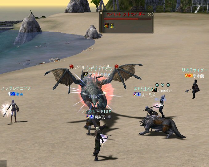とりあえずアデン中央広場に集合・・・ ルウンからゴダードまで走り抜けようとかも考えていたんだが、 たまにはしばらく行っていない『怪獣島(太古の島)』へ行く事にした。 もちろん、ルウンから泳ぎだ。 船代は高すぎるw アップした後で、多少何か変化があるかもしれない・・・と、 期待をして行ったんだが・・・。 相変わらず、PT怪獣がわんさかいる・・・。 リンクさせたり、PT怪獣引っ掛けたらアウトだな・・・。 そういう中なら、単品を釣ってくるススメさんとか、 ヘイトを持っていないヒーラーの蘭さんとか・・・ (何やら職を超えて引いている所がノングレード戦隊だw) 70~80台のレベルのキャラクターが来る場所で、 レベルに合った装備で来て、逝くことも珍しい事ではないそうな・・・。 50代とか60代とかで来ても、まともに狩りのできる場所では無い。 そんな場所で『ノングレード装備』のPTが、彼らモンスターを倒せれば、 それはそれですごい事じゃないだろうか・・・とか思いつつ今までもやってきた。 現在61の俺の攻撃も、結構外れる。 100%当たるのはスキルのダブルショット。 ただ、55とかで来た時よりは気のせいか当たるようになった気がする。 倒せるのが以前より楽に感じるのは、 各プレイヤーのレベルが徐々に上がってきている事はもちろん、 PT自体が充実してきているのも一因だろう。 レベル上げとかお金(アデナ)稼ぎが目的のプレイヤーならやらないプレイスタイル。 PTメンバーの協調性の心地よさに拠る所が大きいなぁと思う。 楽しいメンバーといると時間の過ぎるのをついつい忘れる^^; 23:30終了。 まあ、ここでノングレ帰還しても、村の中で帰還するようなものなので、 この後みんなで泳いでルウンに帰りましたとさ・・・めでたし、めでたし。 参加した皆さん、お疲れ様でした。 PR