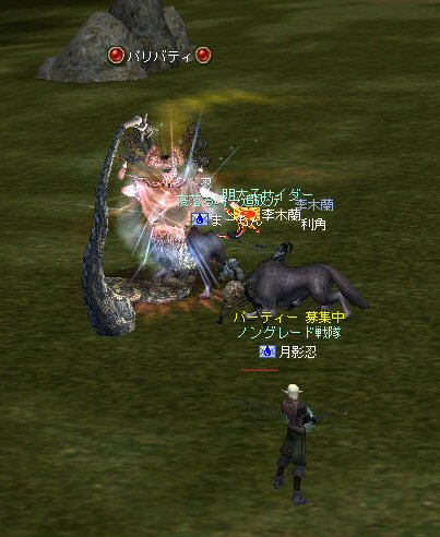 先週のあらすじ: 前回は、ノングレード戦隊隊員の所有しているペットの育成を行ってみた。 果たして『ノングレード装備のメンバーによるペット育成は可能か?』 ペットは、BMW(ブラックメーンウルフ)もいればウルフもいる状態。 あまり危険なところにはいけないw とか言いながら、ケトラーアウトポストで俺だけ1ENDしてみたり・・・ あ・・・危ないぞ!ノングレード戦隊 @w@; 最後になって、俺達の火力、防御力よりもBMWの方が能力が高い事が明らかにw (最初に気付けってのは無しだ^^;) ペットに育成されているぞ!ノングレード戦隊 @w@; やった事の無い事は、試してみないとわからない。 ノングレード装備とゲーム仕様の中で、果たしてどんな「遊び」が出来るのか? ノングレ戦隊の実験と冒険の日々は、今日も続くw さて、今日はどんな冒険をしようか…? 趣旨:血盟、種族、レベル、装備等々の枠を超えて、ともに冒険を楽しむw 日時:本日21:00~約2時間。 場所:アデンの中央広場(変更する場合あり) 以下略w 公式告示参照の事。 今日、課金が切れたんだが・・・また課金しちまった・・・ orz