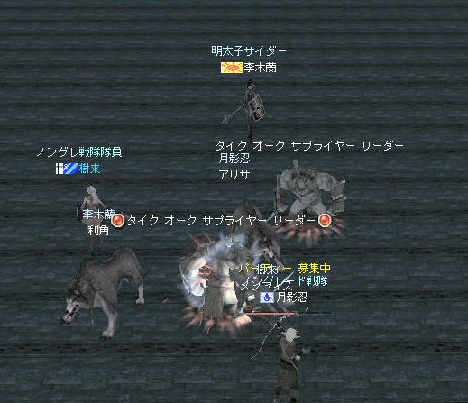 ドビ鯖名物『ノングレードで行こう!』定例会のお知らせです。 趣旨:血盟、種族、レベル、装備等々の枠を超えて、ともに冒険を楽しむw 日時:本日21:00~約2時間。 場所:グルーディオ城村あたり…かな?(PTMで募集しま)レイド次第。 ミッション:石化レイド討伐作戦 詳細:石化レイド討伐は可能か!?試してみよう。 可能であれば低レベルレイド1体(一番低いのが望ましい =w=;) 子供を倒せる事は確認済みだが、本体は未体験の領域だ。 ※レイド討伐予定の方、低レベルどこか残しておいてくれるとありがたい^^; 作戦不可能なときは、また考えようw 参加資格:全身ノングレード装備で2次転職済みの方ならどなたでも(50以上が望ましい)。 害血盟(迷惑行為を楽しむ血盟)の方や無差別PKの方はお断りします。 また、ノングレのOE品も禁止ですw (OE格差を無くすのがノングレクオリティなのだw) 注意:死亡する可能性もありますので、死亡しないための準備、した場合の準備を忘れずに… (死にそうになっても、あきらめず、生き残る努力をw) 多分、今回の場合、よほどの事がない限り死なないと思う。 あと、ブログに載せてますので公開可能なキャラクターで。 PTMの枠がいっぱいになったら〆ます。 ノングレメンバーは極力参加をw (リアル優先で、可能ならね) うーん・・・ イベントの真っ最中だからなぁ…人集まらないかもな… =w=; そうそう、この前問い合わせがあったんだが、知らない人も多いと思うのでQAを。 Q:ノングレード戦隊はクランですか? A:違います。ノングレ遊びの好きな有志が集まったサークルです。 Q:ノングレードで行こう!定例会って何ですか? A:ノングレード装備で、血盟、種族、レベル、装備等々の枠を超えて、 冒険を楽しむ「サークル活動」です。 Q:ノングレード戦隊ってどうやってなるんですか? A:定例会に参加し、月影忍のフレンドリストに登録された人が正規の隊員です。 Q:ノングレードで行こう!に参加したいのですが… A:参加資格を参照して該当するのであれば、参加可能です。 どしどしご参加くださいw Q:ノングレ戦隊を辞めたいんですが… A:あなたの登録したフレンドリストから月影忍を削除してください。 自動的に除隊扱いになります。 …こんな感じかな? では、夜に。 以上、公式のドビ鯖イベント掲示板にに告示した内容でした。