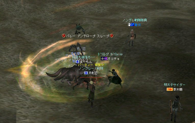 先週のあらすじ: ノングレード装備による、レイド討伐を行った。 討伐時間、約2時間 時間的にはアンタラス討伐並みか!? @w@;) 石化しながらのレイド討伐…リネ史上、おそらくは俺たちが初だろうw まったり、安全に討伐できるのが「石化レイド討伐」の特徴だ。 LAが誰か!?で盛り上がった^^v もちろん、ドロップなんか無い! しかし、楽しかった^^ まあ、『あそび』ってのはそんなものだろう。 (詳しくはブログでw) さて、今日はどんな冒険をしようか…? 趣旨:血盟、種族、レベル、装備等々の枠を超えて、ともに冒険を楽しむw 日時:本日21:00~約2時間。 場所:アデンの中央広場(変更する場合あり) 冒険先:未定(集まったメンバーで相談) 参加資格:全身ノングレード装備で2次転職済みの方ならどなたでも(50以上が望ましい)。 害血盟(迷惑行為を楽しむ血盟)の方や無差別PKの方はお断りします。 また、ノングレのOE品も禁止ですw (OEできないのがノングレクオリティ) 注意:死亡する可能性もありますので、死亡しないための準備、した場合の準備を忘れずに。 (死にそうになっても、あきらめず、生き残る努力をw) あと、ブログに載せてますので公開可能なキャラクターで。 PTMは開きますが、枠がいっぱいになったら〆ます。 ノングレメンバーは極力参加をw (リアル優先で、可能ならね) では、夜に。 ========================================================================== 公式に告知しておいた。