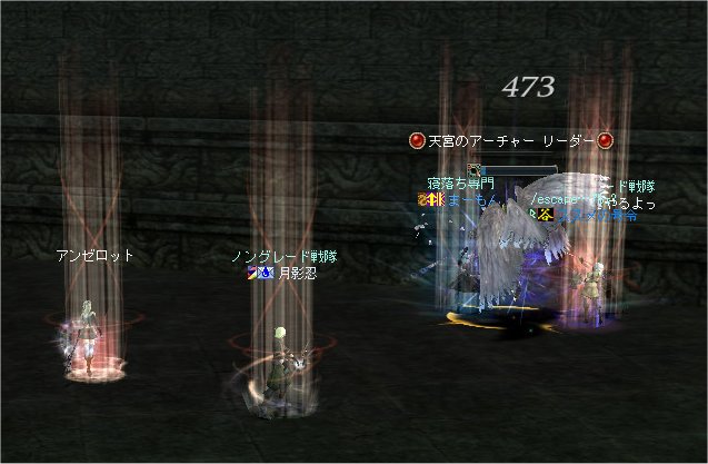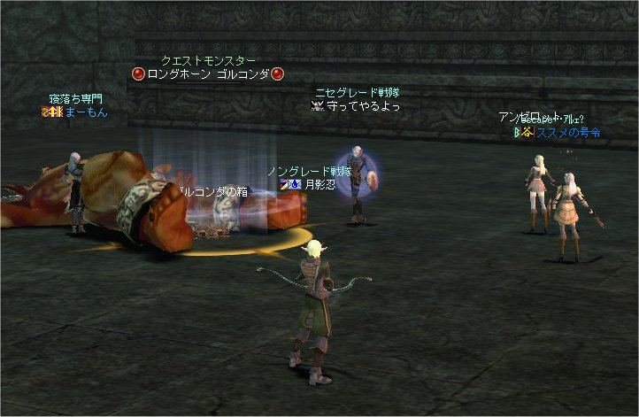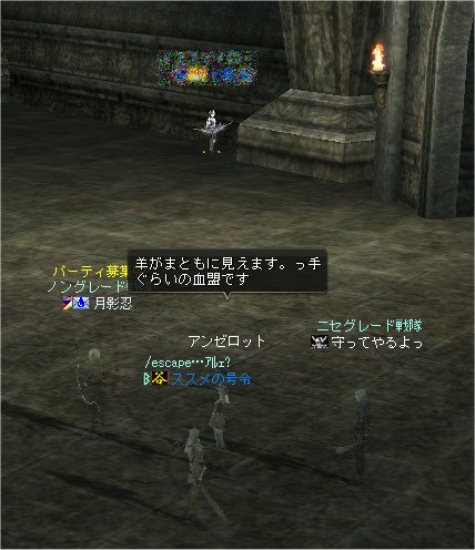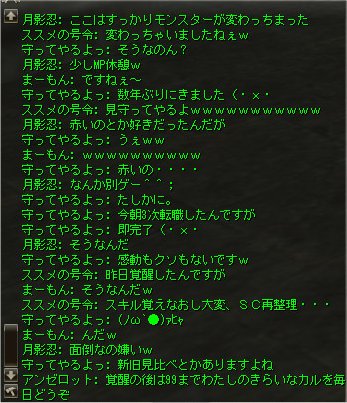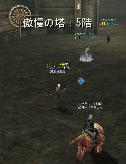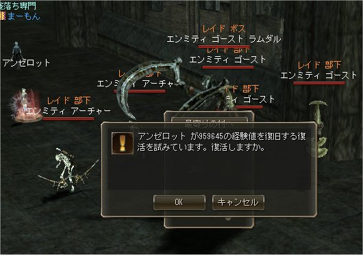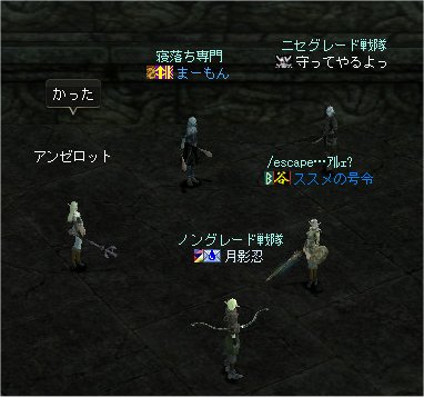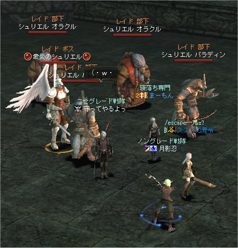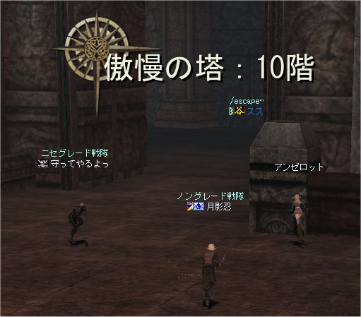 5階の進入通過作戦w とは言っても、みんなレベルが高いので、不安無く殲滅していく… チャットでも話しているが、配置モンスターが随分変わった場所だ。 昔懐かしい…と言う訳には行かない。 適当に、手応えを確認しつつ前進する。特に問題も無さそうだ。 そして6階、前回、火力が足りなくて、通過を断念した階だ。油断は許されない …とか言ってる先からw 貴重なヒーラーが倒れたら洒落にならんw お約束?のノーマル復活スクロールだw そう言えば、昔、エルフの地下要塞入り口で、復活スクロールを販売していた売り子がいたなぁ…。 多分、グルーディオ城村で仕入れて、徒歩で地下要塞入り口まで往復していたんだろう。 初期村には復活スクロール売ってなくて貴重品だった…。 不自由も多かったけど、みんな知恵を絞って遊んだ分、楽しかった気がする。 (まあ、ノングレード戦隊の遊び心は不変だがなw) ここは内部で相当戦闘していたんだが、SSを撮るとラグって危ないので、 撮らなかったw(実際余裕はあまり無かったし) MP消費が激しく、全滅の危機が隣り合わせだったw 何とか無事通過。 時間が圧している。急ごう…とその時w キター!! ノ>ω<)ノ 本当に久しぶり>w<。 PTならではのハプニング。 PTメンバー全員が、懐かしさを覚えた誤リコイベントだったwwwwww これもまた、醍醐味だ。 姉貴が、盾PTでレイド討伐している途中に誤リコしたの思い出したwwwwww マテw 臨機応変。有るがままを受け入れ、最善を尽くそう。 急いでみんな6階へ移動。目指せ頂上!!! つづく