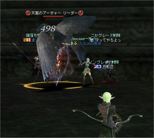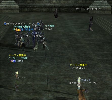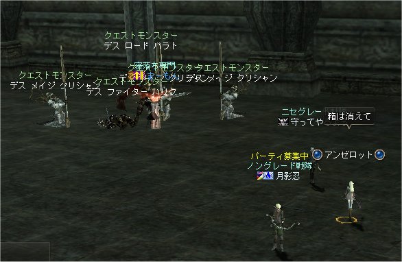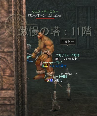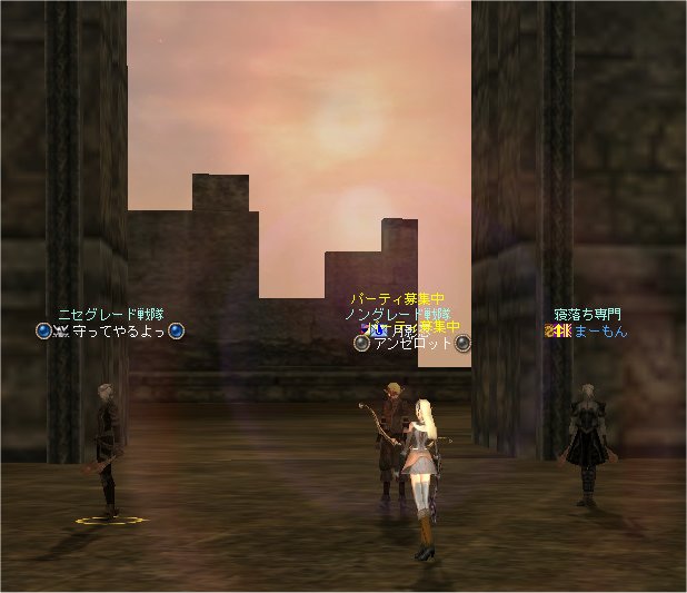 (何か、セーブデータみたいだ=w=;) 7階には、アブナイ血盟の人が放置されていた。噂では羊さんより危ないらしい…。 もっとも、羊さんから直接危害を受けた事が無いので、本当に危ないかどうかは、 俺にはわからない。 昨年9月に無料復帰していた頃、DVでノングレードで行こうをソロ(;w;)でやってて モンスターに倒され、転がってたんだけど、そこで助けてくれたのは、 偶然通りかかった、羊の(俺の記憶が正しければ)ダークエルフのお姉さんだった。 なので、噂で聞く羊さんに対しての他の人たちのイメージと、 俺が自分の目で見たイメージとはかなり違うようだ。 (少なくともプレイスタイルを尊重するプレイヤーは居ると思っている) それぞれのプレイスタイルがあり、お互いにプレイスタイルを尊重するのであれば、 それがどんなプレイスタイルであっても構わないと思う。 だが、お互いのプレイスタイルを尊重しない輩が居るのも事実だろう。 共存を目指すのではなく、無差別に排他を目指す集団。 噂が本当なら、ツから始まるその血盟(伏せてはあるが)は、そういう輩の集まりらしい。 (戦争血盟同士は排他するのがお互いのプレイスタイルで、無差別じゃないからOKw) 後で、ごたごたするのも嫌なので、この階はスルー(通過)しようw ↑俺も欲しいw うぁ・・・まぶしい。 そして、何て美しい夕日なんだ。 写真のようにリアルな、そして懐かしい光の感じは、筆舌に表せないほど素晴らしい。 こう言う景色に出合いたくて冒険していると言ってもいい。 これがリネージュⅡの本来の魅力だ。 だが、時間も無いので先へ進む。 9階、なにか、モンスターの形は一緒っぽいが、名前が違ってる? 新しく配置られたレイドボス。クエストモンスターらしい。 叩くしかあるまいwwwwwwwwwwwwwwwwwwwwwwwwwwwww 倒すwwwwwwwwwwwwwwwwwwwwwwwwwwwwwwwwwww 俺の矢がしこたま刺さっている。 1PTで倒せる事自体はうれしい気もするが、それにしても、レイドの強さじゃないだろw 時間はかかったし、俺のレベルのダメージはそれほど与えてなかったと思うが・・・。 レイドボスじゃなくて、普通にクエストモンスターでいいんでないの??? 倒したwwwwwwwwwwwwwwwwwwwwwwwwwwwwwwwwwww さらに上へ昇るぞ!! つづく
