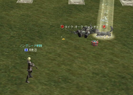 これで、新しいスキルが覚えられる。 一緒に狩りに参加していたウルフも、程なくレベルが上がった。 姉貴がかわいがっているウルフで「アリサ」と言う。 最近、よく一緒に狩りをするようになった。 オテンバだが、一応メスだ。 少し前のインタールード時代は、盾職の弟が面倒を見ていた。 盾職は、ペットを育てるのになかなかいい職業だった。 モンスターから得られる経験値は、 ウルフがモンスターのHPを削った分、貢献度により分配されていた。 つまり、100%ウルフが倒したモンスターであれば、 それで得られた経験値は全てウルフに入ったのだ。 弟は、盾職のちょっと足りない火力を、ウルフと力をあわせて倒し、 得られた経験値をお互いに分かち合う形で育てていた。 ところが、ファーストスローンに時代が変わってから、 ウルフの経験値の入り方が変わった。 モンスターを倒したときに得られる経験値の一定量がウルフに支払われる。 ウルフが倒そうが、主人が倒そうが、得られる経験値は同じになったのだ。 ただ、ウルフと主人のレベル差によってはペナルティが生じるとの事。 ならば、火力の高いシルレンやウィザードが育てた方が、効率はいいのだろう。 ところが、ウィザードの弟も詠唱速度に変更があったらしい。 詠唱時間がやたら長くなって、魔法攻撃が使い物にならないくなった為、 最初はウィザードの弟の所で「アリサ」を育てる予定だったのが、 急遽、俺が育てる事になった^^; 姉貴の勅命である。 (まあ、姉貴にはDELの借金があるので、俺に選択肢は無いんだがw) でも、嫌って訳でもない。 俺が、タイクオークウォッチャーのスタン攻撃で、ぴよっている時に、 果敢に攻撃し、倒してくれるので、とても助かっている。 さて、俺もレベルが上がったのでアデンのファイターギルドで 一式スキルを習ってきた。 「どれくらい効力が有るものか、ノングレで試してみるかー!」 と着替えて飛び出したのはいいんだが・・・ 弓矢忘れてるしw まあ、矢が無くても、ダブルショット(スキル)でハイこの通り。 ちょっとだけ強くなったかもしれない^^ 次のスキルはレベル60にならないと覚えられない。 いつの事になるのやら =w=;