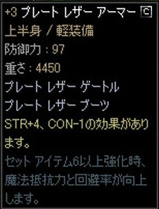 『プレート レザー アーマー』のセットを身に付けると、セット効果が適用される。