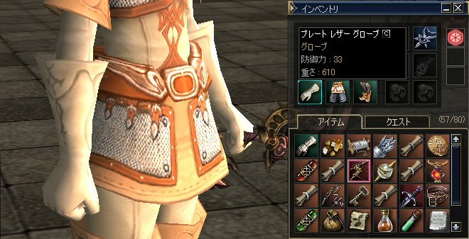 俺も、一応セットは持っている・・・ プレートレザーアーマーとゲートルと靴・・・ (元々は、姉貴が俺のために準備してくれた物だが・・・) なので、服を着込めばそれなりのセット効果がある。 しかし、 手は、ミスリルガントレットなのだ・・・ これは、俺が補給品クエをやっている時に、オークが落としてくれた装備品だ。 見た目が似ているので今まで使っていた。 しかし世の中には、『プレート レザー グローブ』と言う物が存在するらしい・・・ 今まで、セット効果とは関係なかったので、あまり気にした事はなかった。 しかし、気になり始めると欲しくなる物だ・・・。 どうせなら、揃えたい。 爺さんから、プレレザーの手の図は登録して有るとの事。 コアさえ手に入れば・・・ と思いきや、クエで手に入るよとクラハンの時にメンバーが教えてくれた。 調べてみると、たしかにある。 「アースルアーで釣った箱」と言うクエがある。 オーレンの城村の釣り場組合員ウィレリから受けられる。 たしかに報償として、プレレザー手が手に入るようだ。 ところが・・・フィッシングマスタリーがレベル16、必要とされ、 他にも、紫色の宝箱(小)と、アースルアーの合計3点が必要。 フィッシングマスタリーがレベル1だったのを、大金を払って16まで上げた。 まあ、プレレザ手の為だ。仕方有るまい。 ちなみに釣りスキルのポンピングとリーリングは1のままだw このまま釣りをしたら、悲惨な事にになるかも知れない。 次に紫色の宝箱(小)だが、これは爺さんが持ってるので倉庫移動すればいい。 難関が、アースルアー・・・。 アースルアーを手に入れるためのクエを別途遂行しなければならない。 『ウィレリの特殊なルアー』と言うクエ。 おなじNPCから受ける事になるんだが・・・ 【無法者の森にいるタルク バシリスクを倒し、『タルク バシリスクの眼』を100個集める。】らしい・・・ 倒しても、必ずアイテムが手に入るわけではない。 まして、敵は薄青。ドロップも少ししょぼくなっている。 結局はフルSSに近い状態で狩りをする訳だが・・・多分赤字だ。 ノングレードでも倒せない敵ではないが、時間がかかりすぎるので、本装備戦闘。 武器はエミナ+3(ノーマル精錬済み)と幻影DELの両方を使っている。 もちろんプレレザセットで攻撃力を上げているのは言うまでもない。 それにしても、だ・・・ いや、なんと言うか・・・面倒だ=w=; |