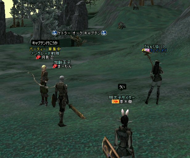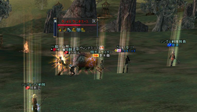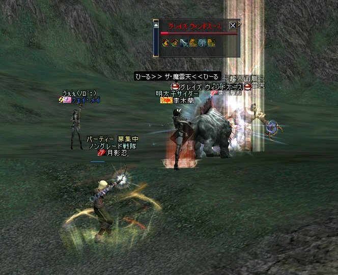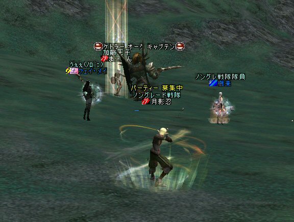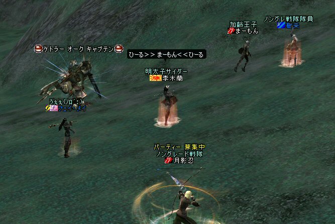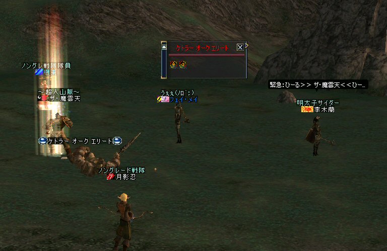 最近にしては、珍しい。 ノングレードで逝ったのは久しぶりだ。 経験値が下がるのは痛いが、「全滅」はしてない。 高レベルのエルダーさんやビショさんが居てくれると、 本当に、ありがたい。 いつもは「最寄る」か「ノーマルスク」なのだ。 シリエルさんのレベル2のリザでもありがたいのに、 それ以上のリザがもらえるとなると、もう何度でも逝け・・・(違 月影忍「そう何度も、逝きたくないわw」 目に付いたモンスターを片っ端から叩いているんだが、 普通に倒せている。 案外、宝箱なんてモンスターが強敵だったりする。 デバフ系はほとんどかからない>w<; ルーツもスリープも効かないから、タゲられるとキツイ。 スースはアクティブモンスターだ。 PTメンバーの一人が、近寄って襲われたw。 グレイズ ウィンドスースに関しては、安定して狩れるモンスターと言えるだろう。 ケトラー オーク ミディアム・・・ こいつも新顔だな・・・ で、 仕掛けてみると、WIZだったw うはw 何だこのダメージはw 2603・・・ほとんでHP飛んでますw 好事魔多し・・・ orz つづく