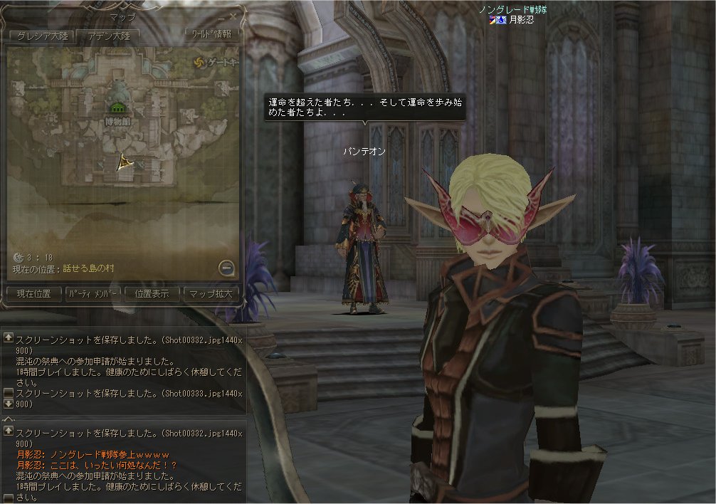 クリックしてみると、 免疫がある監視兵を倒す? どこだよ?誰だよその「免疫がある監視兵」って! そんな奴、いねーよ(;谷) 結局、右も左も分らず、右往左往するだけで時間だけが経過する。 やっとられん(;谷) 話せる島も、随分変わったようだ。 なんか、変なウサギっぽいけど違う(リス?)変な生き物が生息している。 うむ、リアルには存在しない生物だ。動きもそれっぽい。ファンタジーだなw NPCについては、いろいろ進化しているのか…悪くない。 なんだ?ここは?変なものが出来ている。ここだけ見ると、別ゲームだな。 以前のリネージュⅡの話せる島の風景とは似ても似つかない。 こわれちゃったんだなぁ・・・ ウロウロしていると、オークスナイパーと戦闘兵士というNPCが戦っている。 (いったい、何の意味があるのだろうか?) 同じ弓職同士、オークスナイパーと共闘で戦闘兵士を叩いてみる。 NPCとは言え、共に戦うと、仲間っぽい^^; NPCで無ければ、更にいいんだが…ちょっと、寂しくもある。 しかし、このNPC、HPいくつあるんだ?ダメージかなり与えたハズなのに、ビクともしないw 不死身?….......................................................ノングレメンバーで、倒してみてぇ~ =w= ちょっと離れた丘から見た、話せる島の町の外観。 技術や美術はいいのかもしれないが、この暗闇は晴らせるのだろうか? たまーにこんなのが出て、レイドボスが街を襲うとかと言う設定にすると、面白いのになぁ。 レイドボスが街中に襲ってくる前兆とかで、個人の露店業者は店をたたむとかね。 しかし、たまにならいいという話で、 月だか太陽だか知らんが、こんなのがずーっと天井で輝いている世界なんてごめんだ。 昼と夜があるっぽいけど、特別な夜と言う設定にしないと、重みが無くなる。 その辺を冒険。 風景変わってて、ちょっとは新鮮だが、知り合いが誰も居ないので、つまらない。 =w=; 一時間経過したので、ノングレ帰還で〆ようと思ったんだが… 途中でエフェクト無くなるし、駄目じゃんwwwwwwwwwwwwwwwwwwwwwwwwww また一つ、ノングレード戦隊の技(?)が使えない仕様になっちまったのか? orz 虐めだよね?これ。ノングレード戦隊は「遊ぶな」と? 話せる島の観光名所は無くなっていた。 ゴーレムも居なかった。 明るい日の光もない。 街中は、NPCの数がやたら多い。 (確かに一般プレイヤーも散見されるが、NPCの数の方が、はるかに多い) チャットで同盟に話しかけても誰からも返事が無い。 クランの接続メンバーみても、誰もインしていない。 話す相手が居ないんだ。 いつの間にか、みんな引退して、残滓(ざんし又は、ざんさい)だけになったのだろうか? (かく言う俺もその一人だが・・・) 賑やかそうに見える町並みだが、それが全てNPCと言う所が悲しい。 (雰囲気だけでも華やかな感じの方がいいのかもしれないが・・・) 周りがロボット(人型アンドロイド)ばかりで、 たった一人だけ生き残った人間みたいなシチュエーションだぜ;w; 仲間がいないと、つまらんなぁ… |