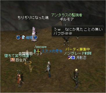 DV入り口から奥へ進む。当然、C4(クロニクル4)あたりとはモンスターの配置も全然違う。 百合乃さん、嵯姫さん、ススメさんの3人で、バシバシ狩っているw 俺も、攻撃しているんだが、なんか破壊力が違う。 モンスターのHPも高いし、通常Nグレでは殲滅するのに時間がかかりそうだ。 モンスターのデザインは、いいものがたくさんあるんだが、なにせ、先にレベルありきな仕様だからなw まだ見ていないモンスターもたくさん居るのだろうなぁ。 DVも、地形は変わっていないようなのだが、モンスターが違うので、別世界に見える。 グレード書いてないから、Nグレードと認定(ま、いい加減だが、俺様ルール的には正しい)。 ま、本来なら85R?とか高レベルな武器なのだろうけどね。 DVで遊んでいる人発見(むしろ、珍しいw)。 むかしは、たくさん人(あるいはBOT?)がいた気がするんだが。今は閑散としている。 PTモンスターだ。相手をするのは面倒そうだ。 NPCの配置が違ってたり、増えていたり、変なオブジェクトがあったりする。 本当にここはどこなのだろうか・・・^^;(声:DVですw) と、言うわけで、やっとDVC入り口へ到着。アンタラスの監視、ご苦労様ですw ドラゴンバレーを高レベルノングレード隊員と巡って来たわけだが、むかし懐かしい姿はどこにも無い。 そのむかしですら、ソロでDVは、かなり危険だったのだが、さらに一桁上がった感じ。 前回の無料期間のときにも試したんだが、俺のレベル60台では入り口のモンスターを引き狩りして、運がよければ倒せる感じ。運が悪ければ、魔法攻撃+クリティカルでHPを遥かに超えるダメージを食らう。80レベルの狩場での話だ。善戦してると言えよう。 運よくDVで狩りをしているがいれば、その人の横をすり抜け、奥へ進む事も出来なくはないが…モンスターがアクティブで配置がうまくバラケているので、すぐにどれかに引っかかるw。ソロは無理だった。(ま、詳しくは以前のブログを見てくれ^^;) ノングレPTでの侵入も試した。だが、ハードルは高かった。DV途中、それも入り口から右手の山登ったあたりで全滅したっけ。シャドーとか無いと横断は困難を極める。対象が80台の狩場じゃ、しょうがないのかも知れない^^; 今回は、それがあったお陰で、すんなり到着できた。 高レベルな真っ赤な敵モンスターを、 レイド討伐の如く狩るのがノングレ戦隊なんだが^^; 時間制限もあるし、集まったメンバーの自前のスキルだから問題ないだろ。 さて、DV入り口へ来たんだ。無謀だろうと何だろうと、中に入らない訳にはいかない>w<b ここから先は、まだ行った事が無い未知の領域だ。冒険だぜwwwwwwww つづく